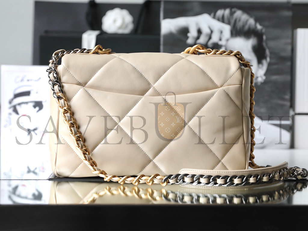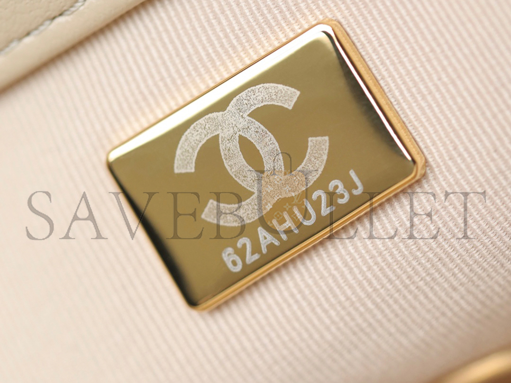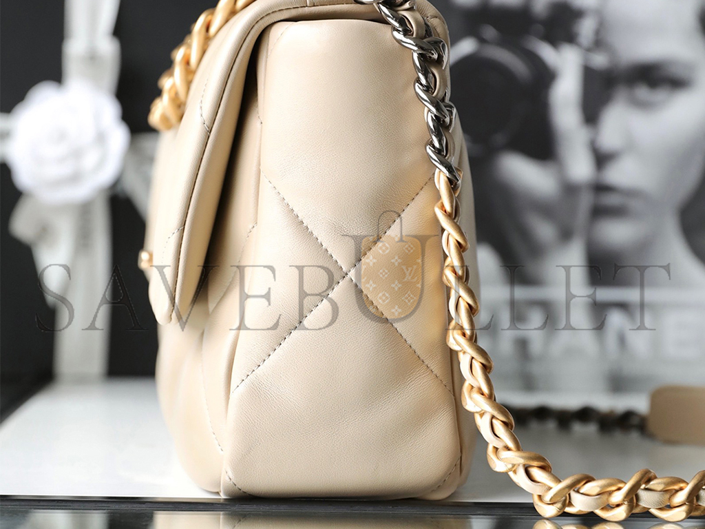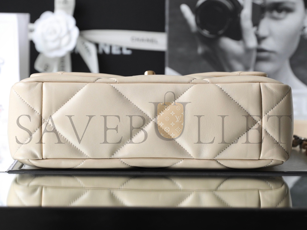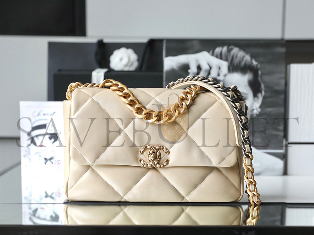 CHANEL MASTER GOATSKIN QUILTED MEDIUM CHANEL 19 FLAP BEIGE (26*16*9cm)