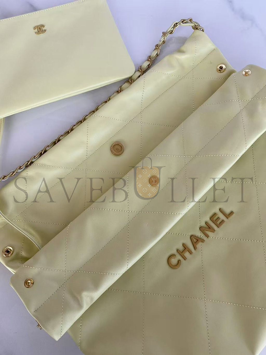 CHANEL MASTER 22 BAG YELLOW CALFSKIN GOLD HARDWARE AS3260 (39*35*7cm)