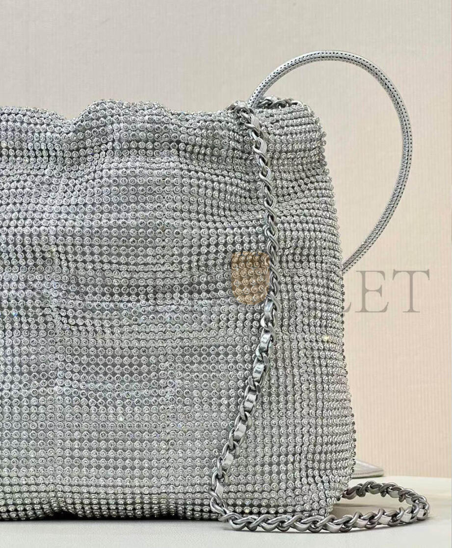 • CHANEL MASTER EVENING BGA STRASS,SILVER-TONE METAL SILVER AS4894 (17*15*4cm)