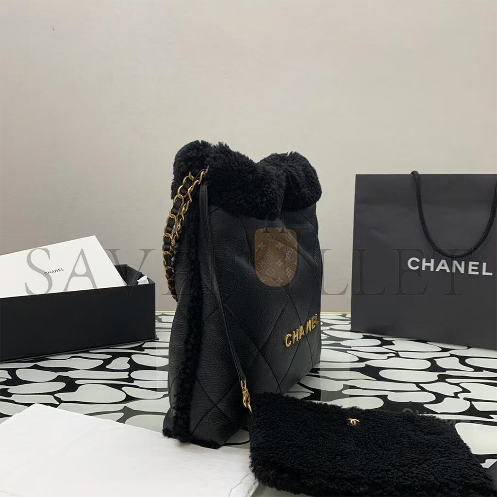 CHANEL MASTER LAMBSKIN SHEARLING QUILTED SMALL CHANEL 22 BLACK AS3260 (30*30*8cm)