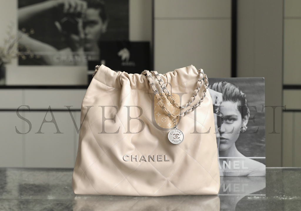 CHANEL MASTER MEDIUM 22 QUILTED SHINY CALFSKIN LIGHT BEIGE (42*39*8cm)