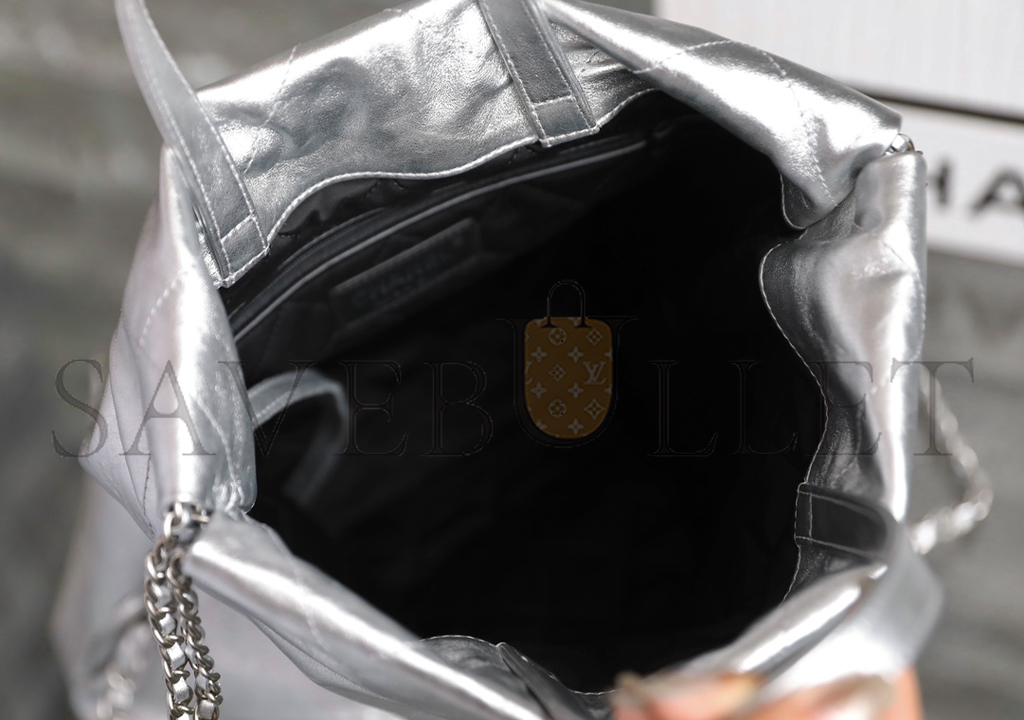 CHANEL MASTER METALLIC CALFSKIN QUILTED CHANEL 22 BACKPACK SILVER (34*29*10.5cm)