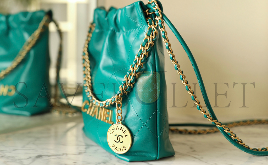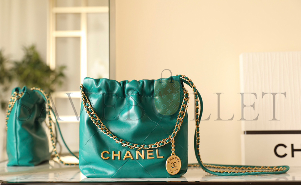 CHANEL MASTER SHINY CALFSKIN QUILTED MINI 22 BAG GREEN (20*19*6cm)