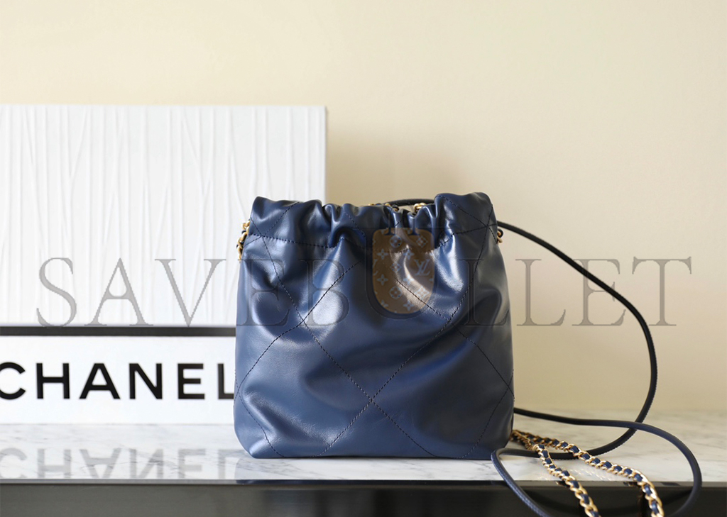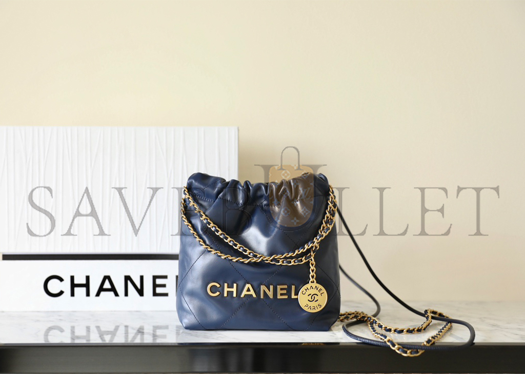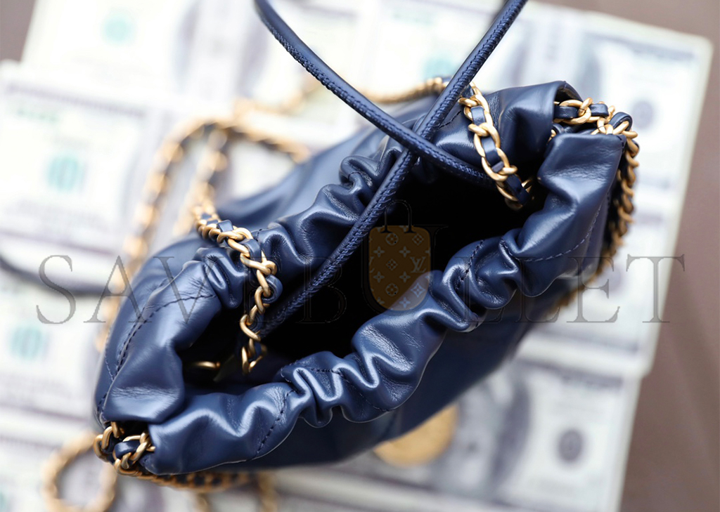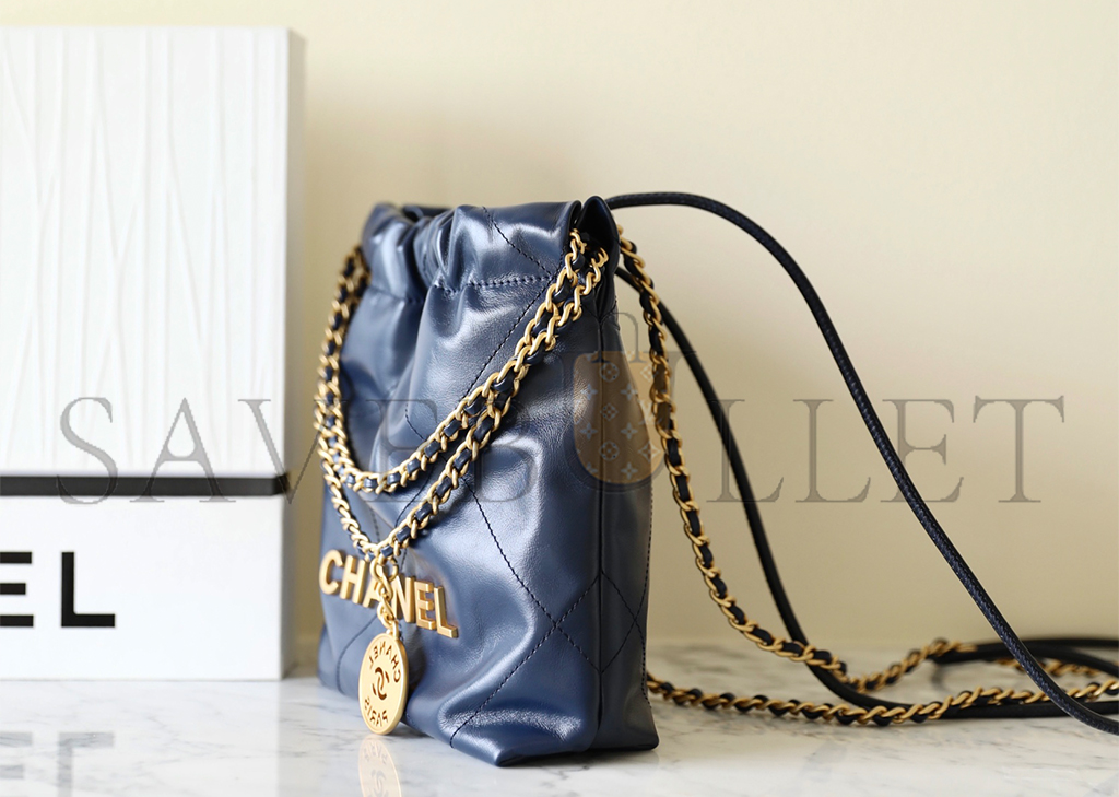 CHANEL MASTER SHINY CALFSKIN QUILTED MINI CHANEL 22 NAVY BLUE (20*19*6cm)