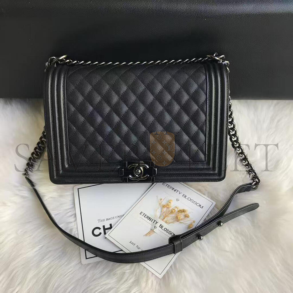 CHANEL CAVIAR LARGE QUILTED BOY FLAP BLACK A92193 Y83338 94305 (28*17.5*7.5cm)