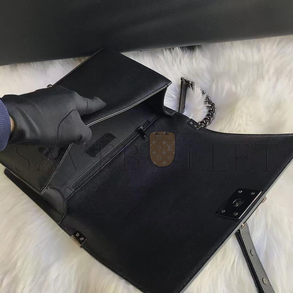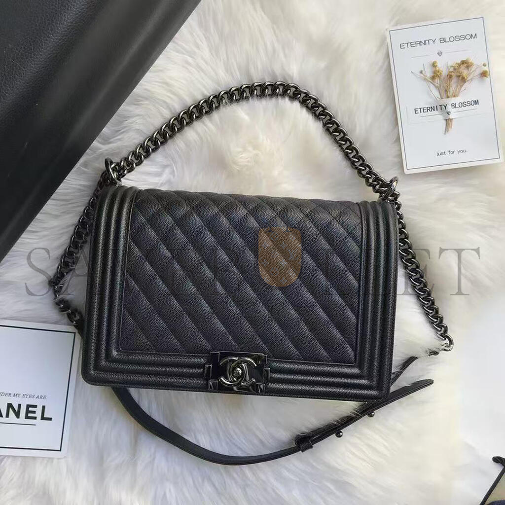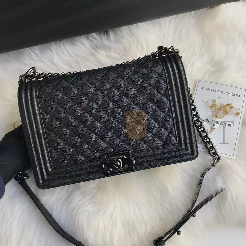 • CHANEL CAVIAR LARGE QUILTED BOY FLAP BLACK A92193 Y83338 94305 (28*17.5*7.5cm)