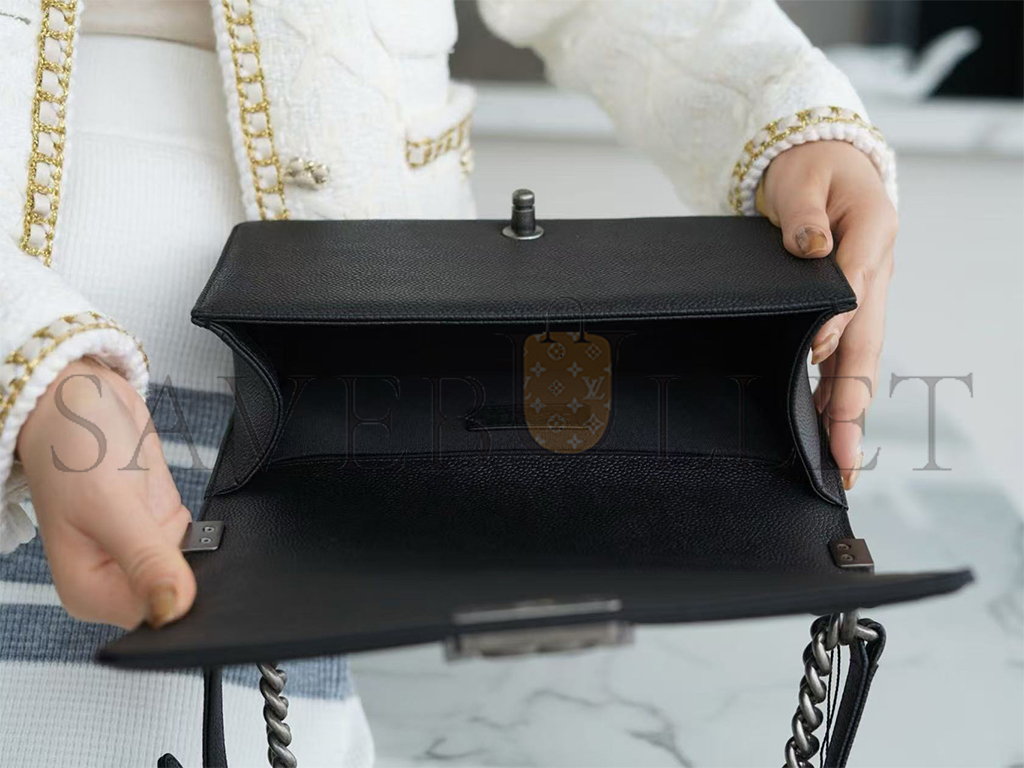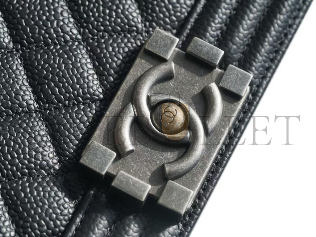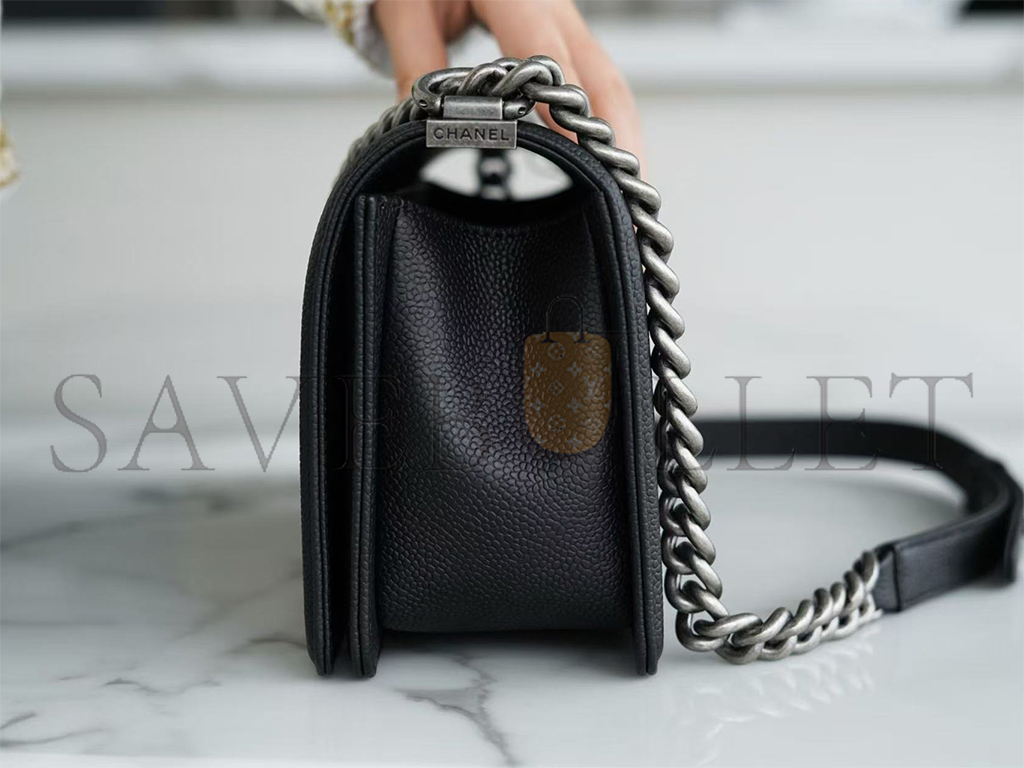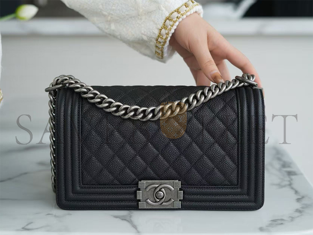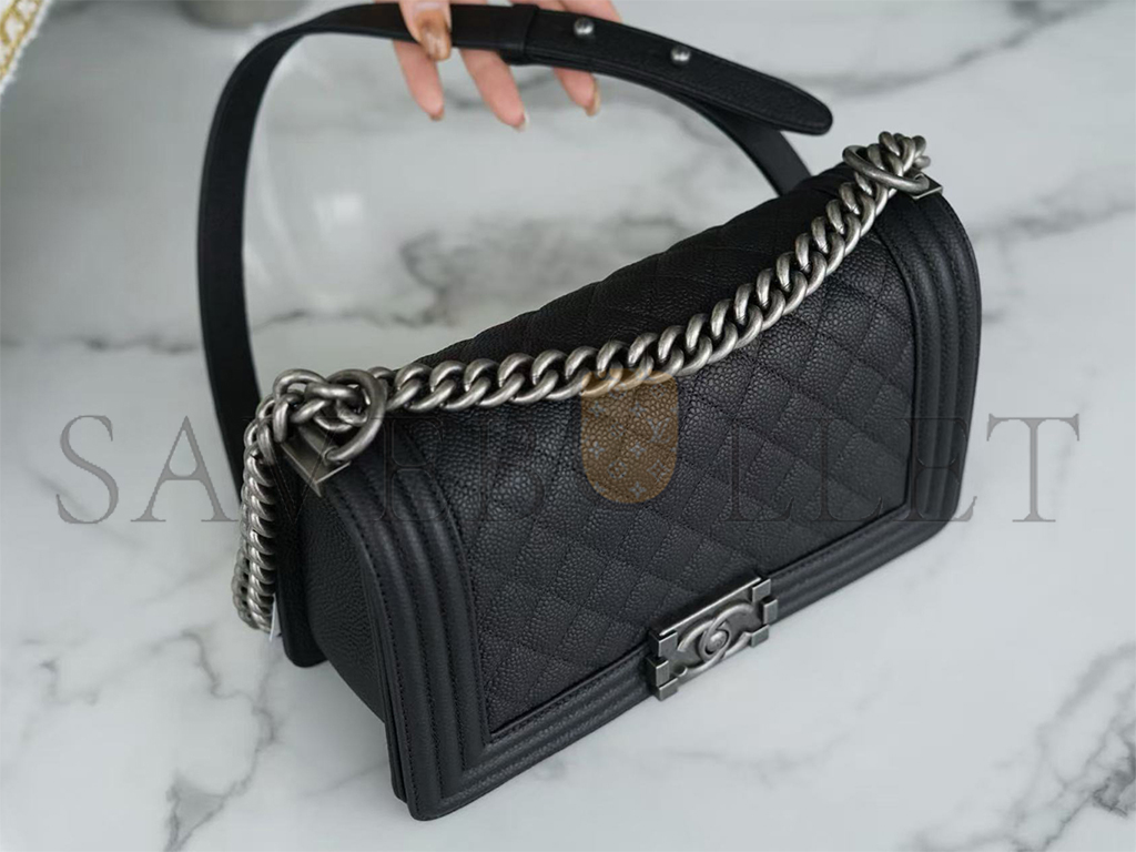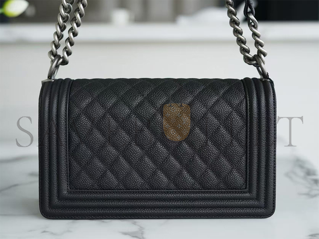 CHANEL CAVIAR MEDIUM QUILTED BOY FLAP BLACK A67086 Y83338 94305 (25*15*8cm)
