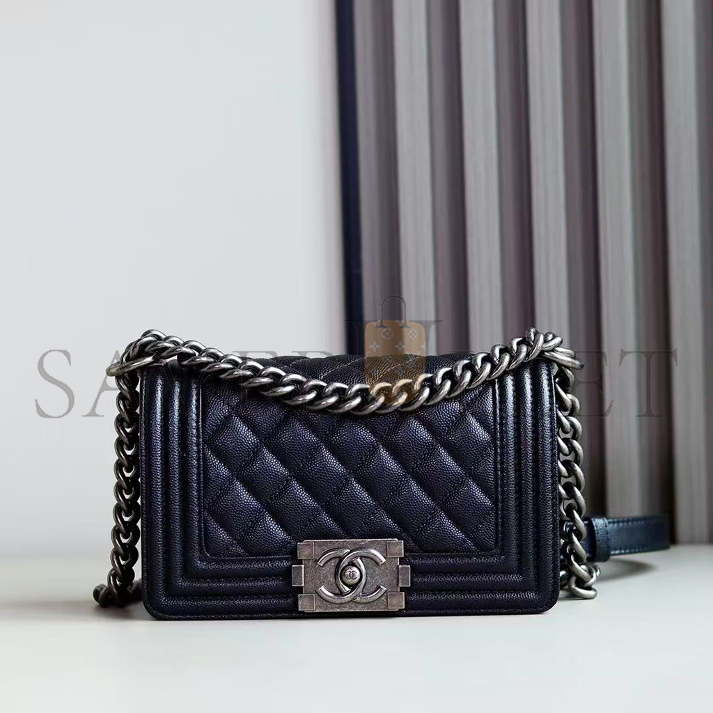 • CHANEL CAVIAR SMALL QUILTED BOY FLAP BLACK A67085 Y83338 94305 (20*12*8cm)