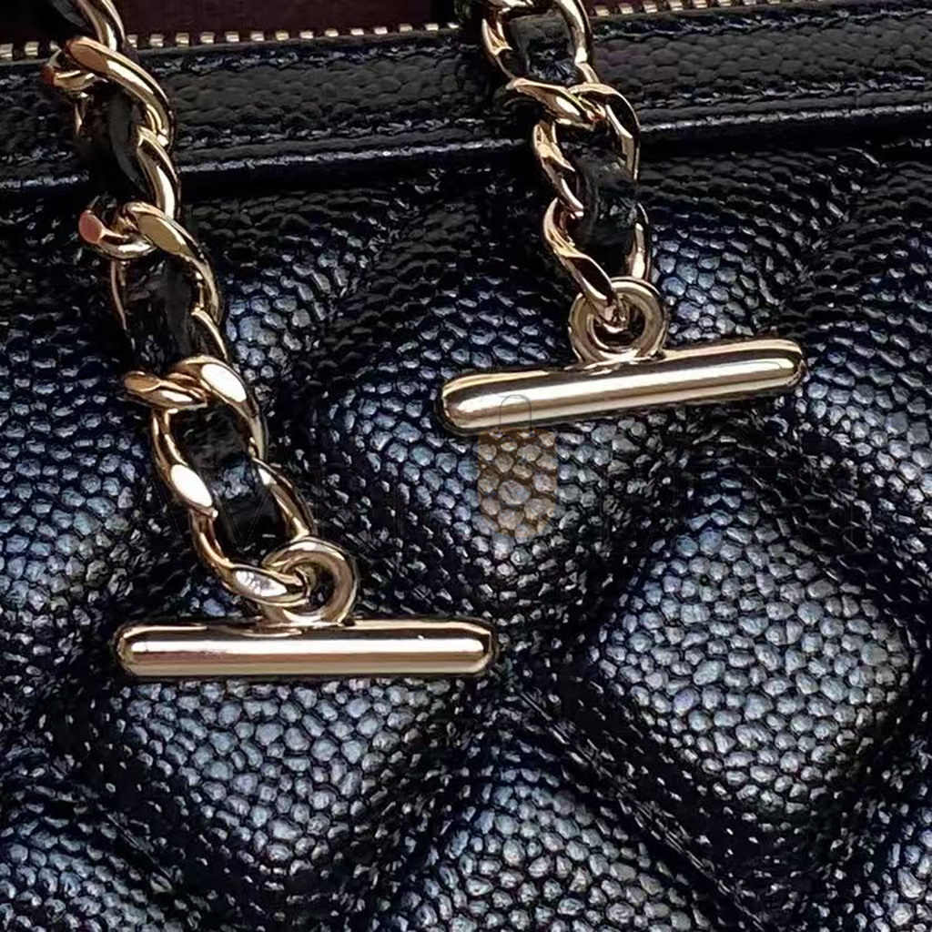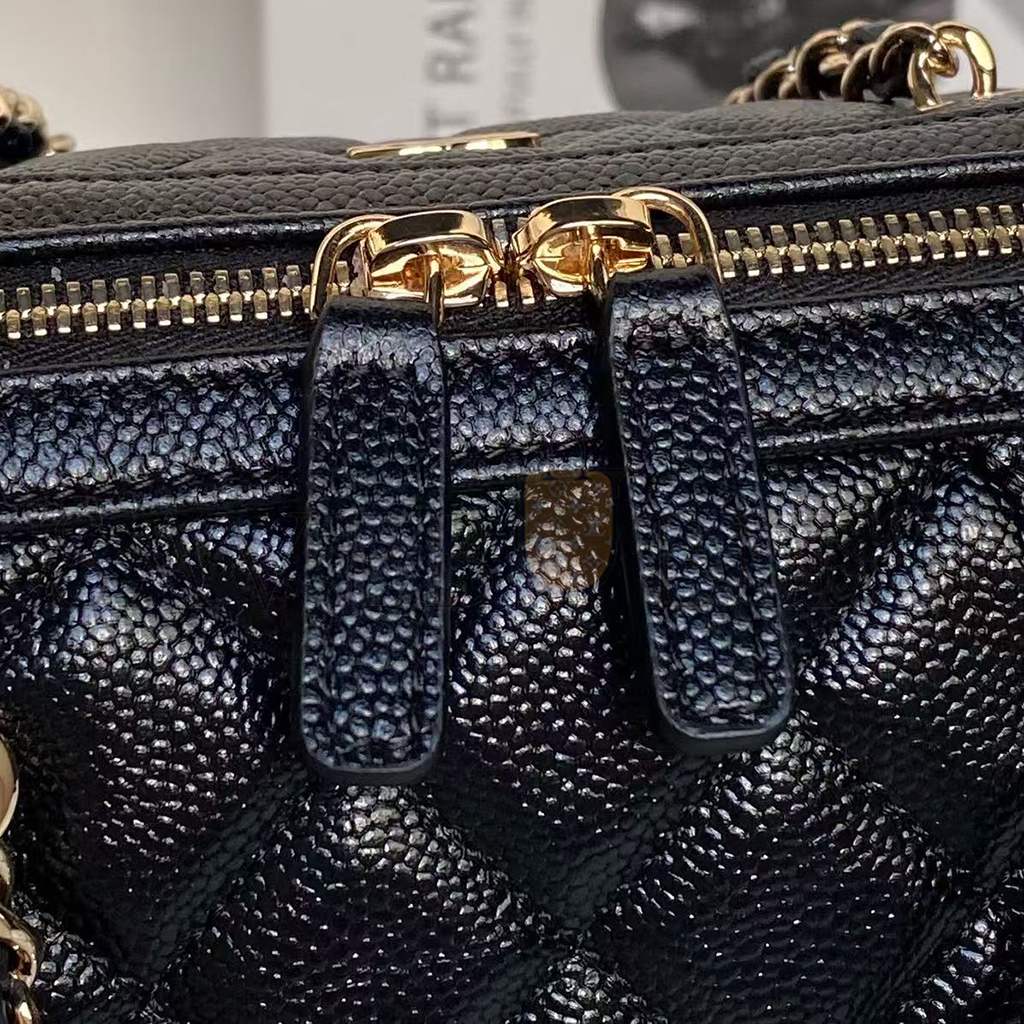 CHANEL MINI TIMELESS CLASSIC BARREL BAG WITH CHAIN BLACK SHINY CAVIAR LIGHT GOLD HARDWARE AS0932 (18*13*10cm)