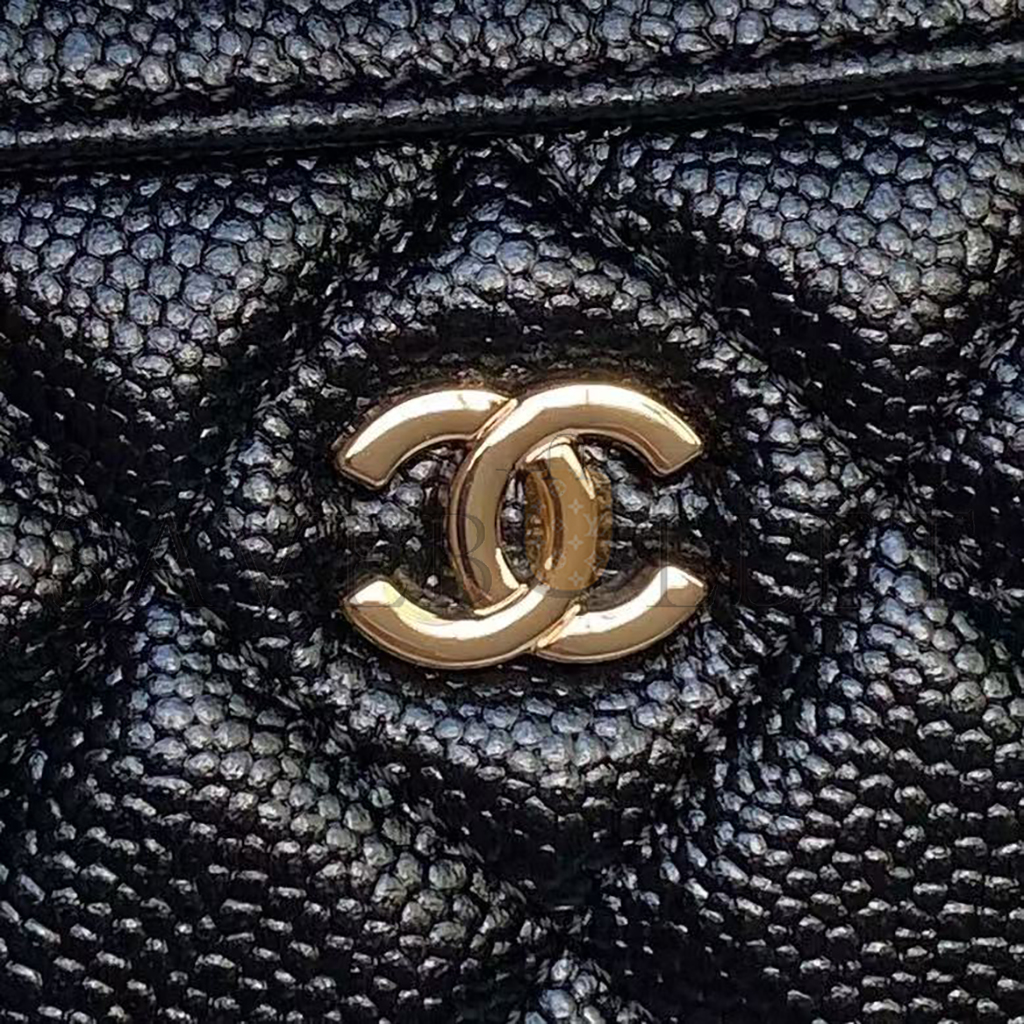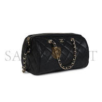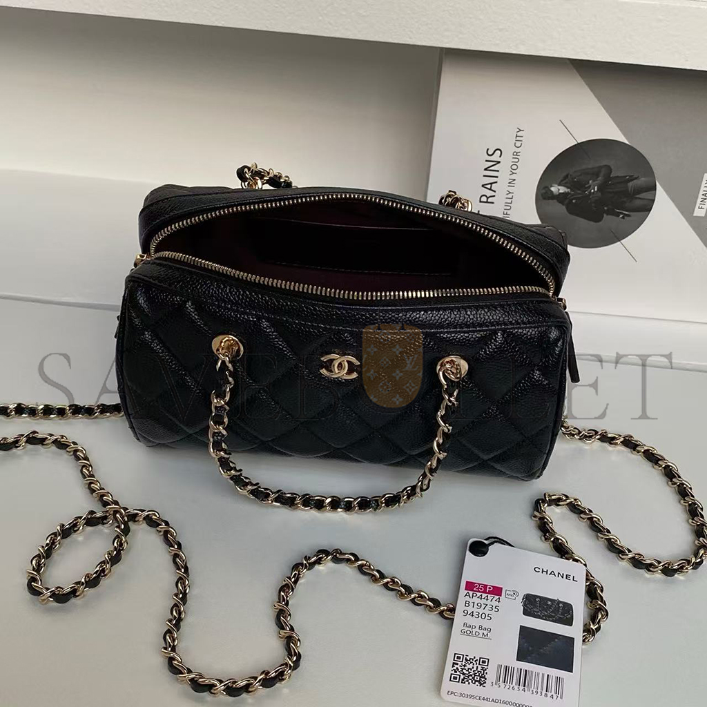 • CHANEL MINI TIMELESS CLASSIC BARREL BAG WITH CHAIN BLACK SHINY CAVIAR LIGHT GOLD HARDWARE AS0932 (18*13*10cm)