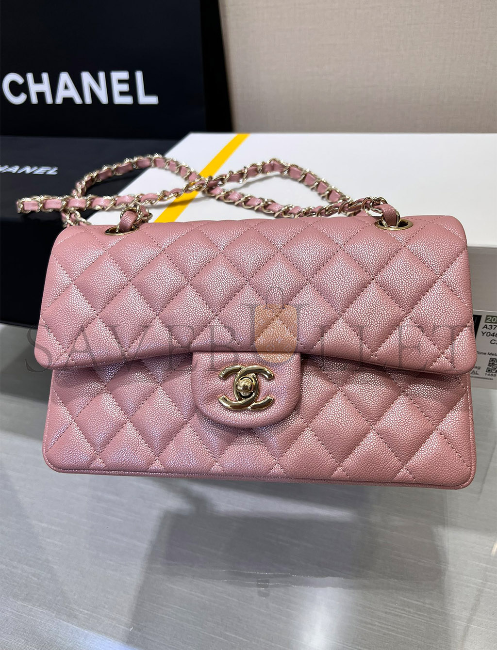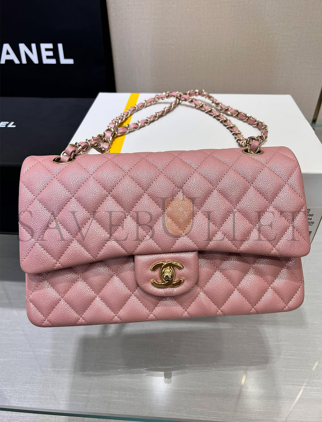 • CHANEL PINK CAVAIR LEATHER MEDIUM DOUBLE FLAP BAG A37586 (25*15.5*6.5cm)