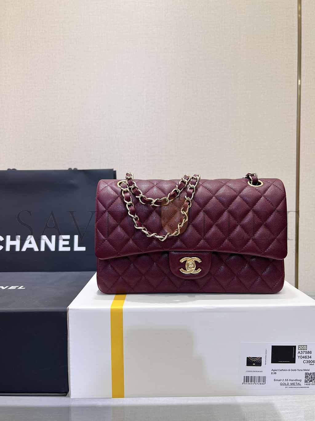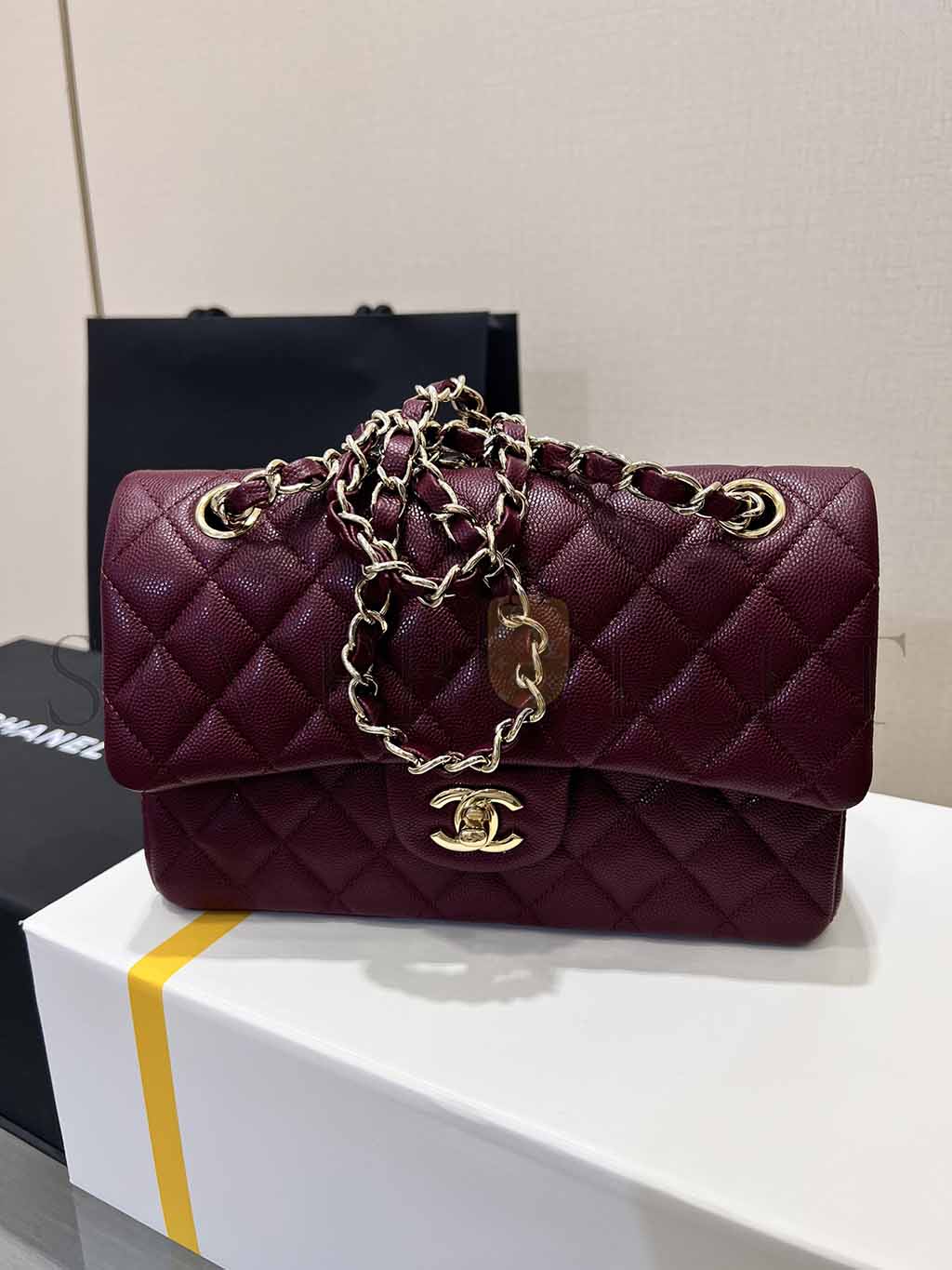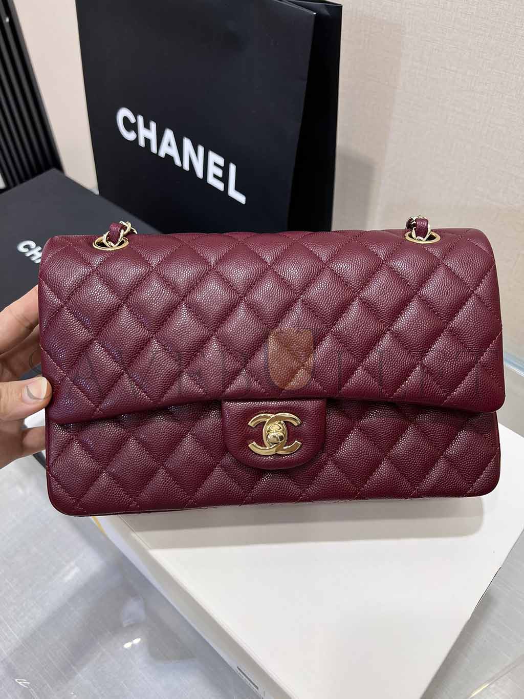 CHANEL VINTAGE BURGUNDY WINE RED CAVIAR MEDIUM CLASSIC DOUBLE FLAP BAG A37586 (25.5*15.5*6.5cm)