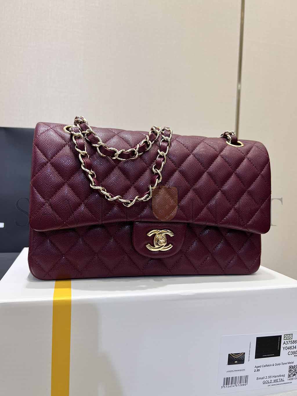 • CHANEL VINTAGE BURGUNDY WINE RED CAVIAR MEDIUM CLASSIC DOUBLE FLAP BAG A37586 (25.5*15.5*6.5cm)