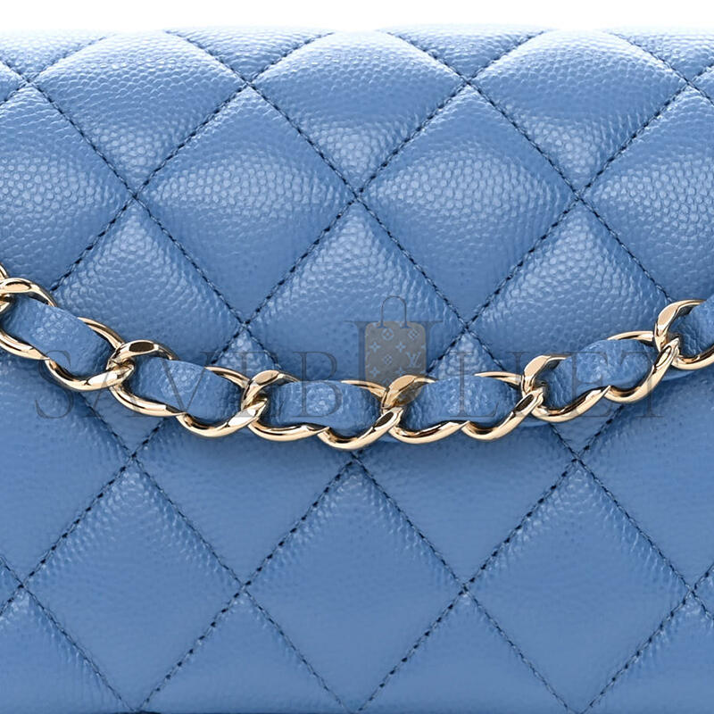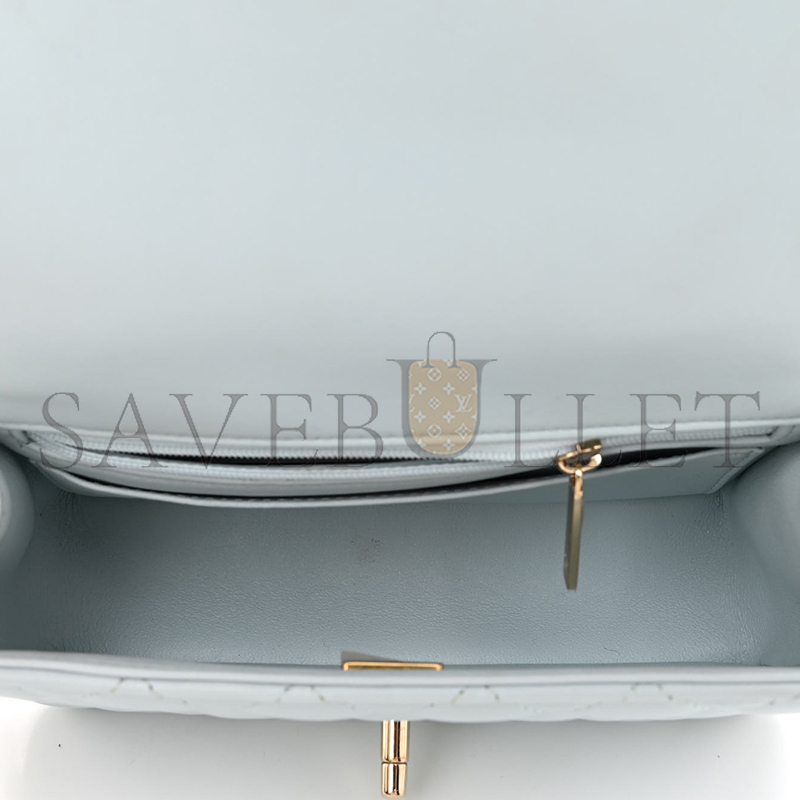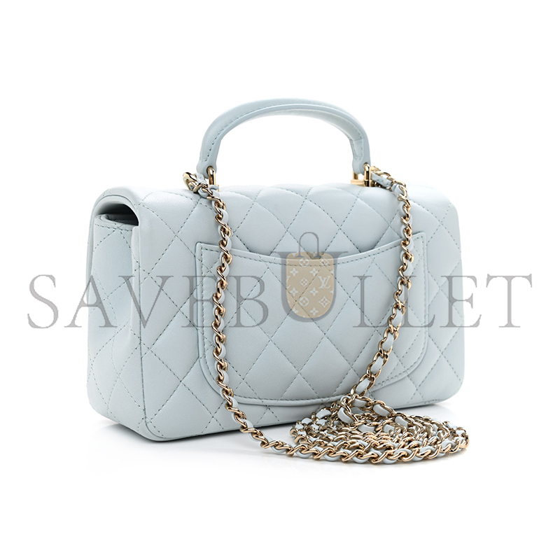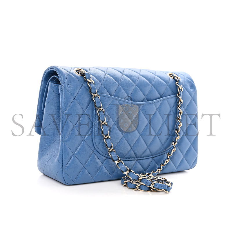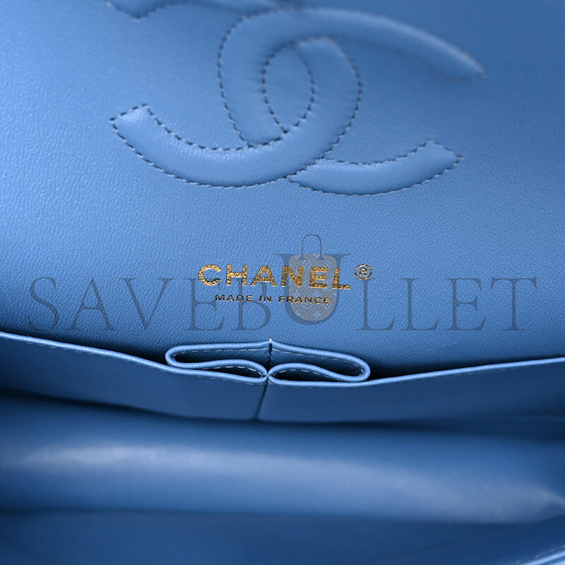 CHANEL LIGHT BLUE LAMBSKIN QUILTED CLASSIC FLAP MEDIUM GOLD HARDWARE (25.5*15*7cm)