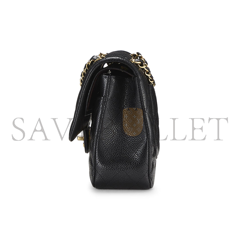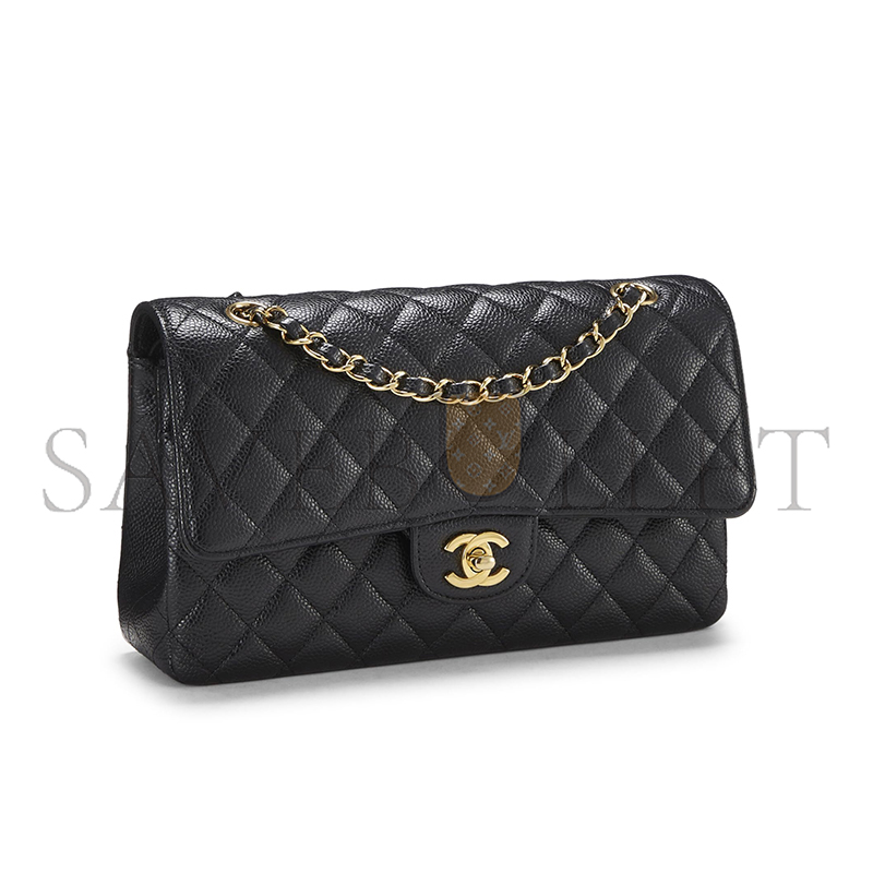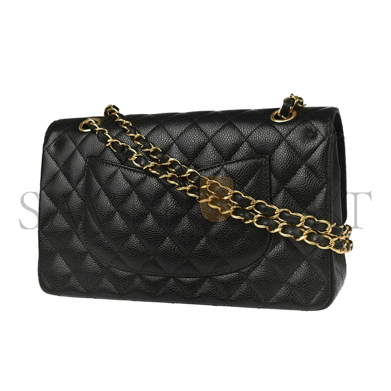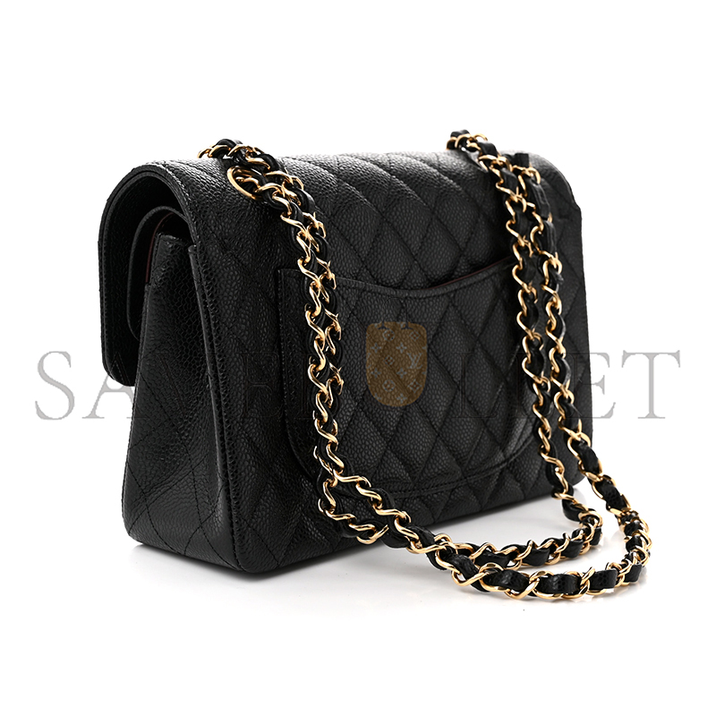 CHANEL CLASSIC MEDIUM DOUBLE FLAP, BLACK CAVIAR LEATHER, GOLD HARDWARE (25.5*15.5*6.5cm)