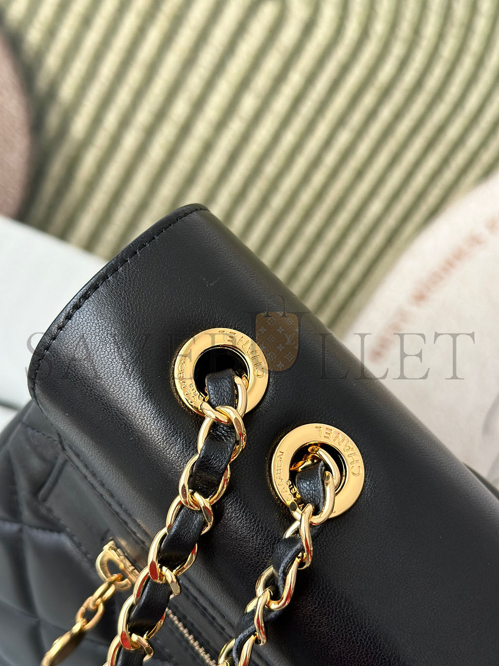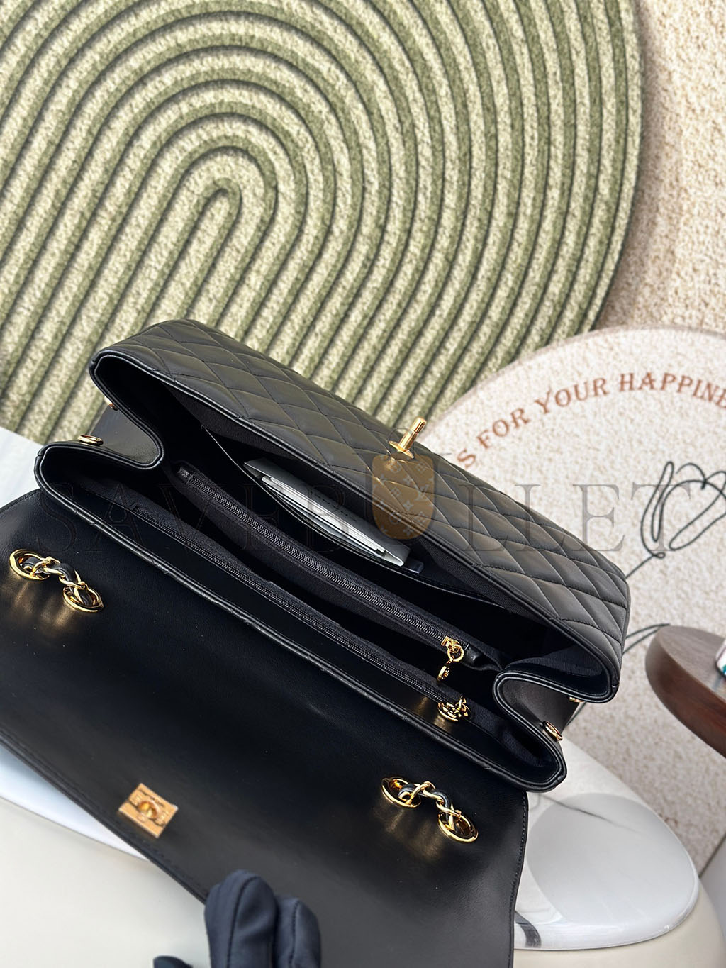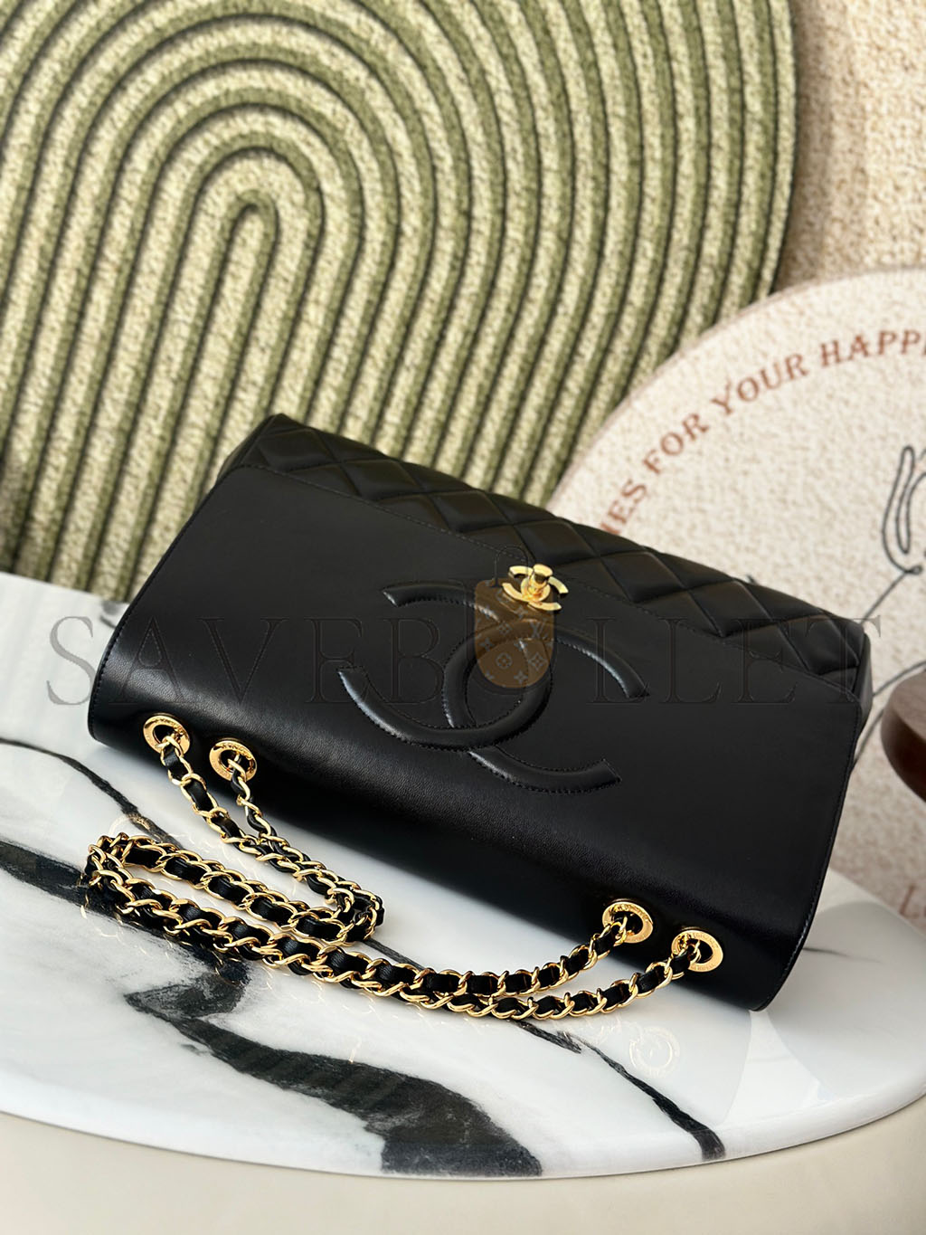 • CHANEL MASTER BLACK VINTAGE CC QUILT LEATHER FLAP BAG A2215 (33*23*11cm)