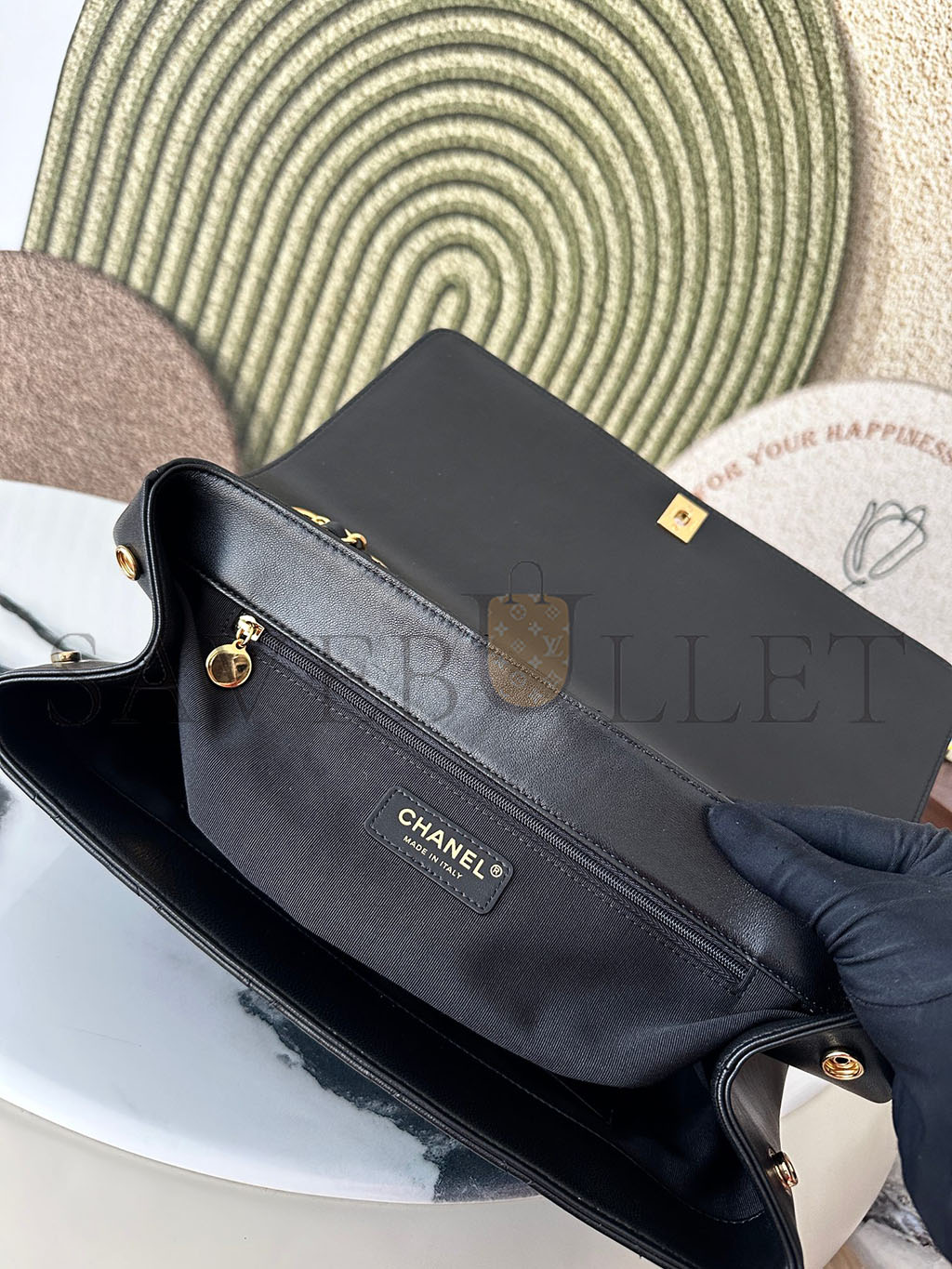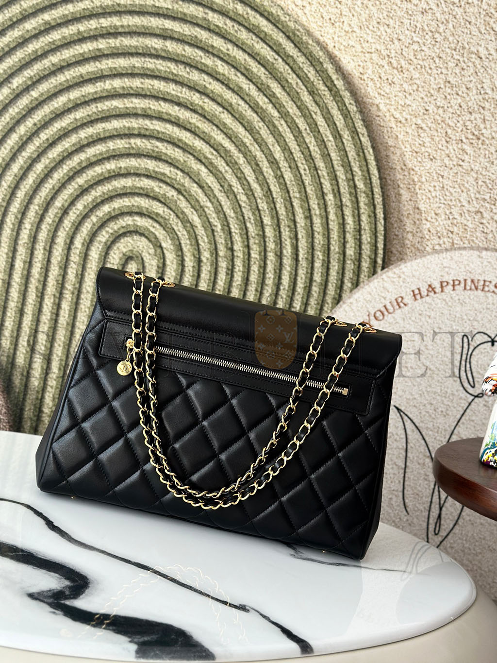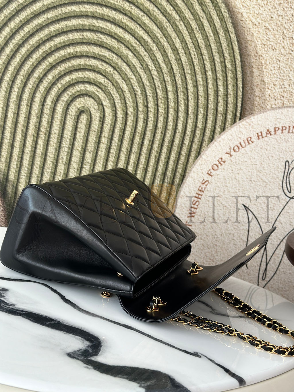• CHANEL MASTER BLACK VINTAGE CC QUILT LEATHER FLAP BAG A2215 (33*23*11cm)