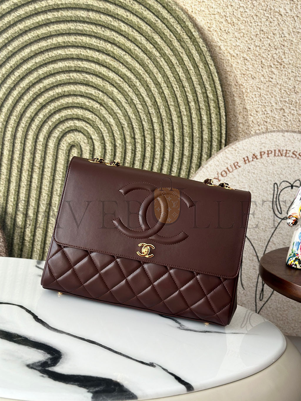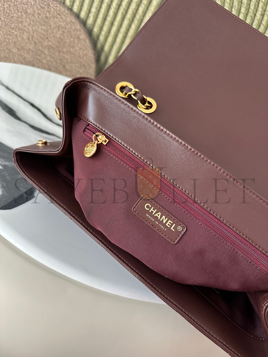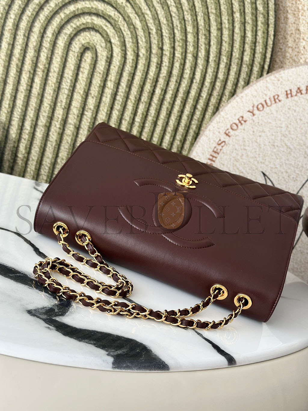 • CHANEL MASTER BURGUNDY QUILTED LEATHER VINTAGE CC FLAP BAG A2215 (33*23*11cm)