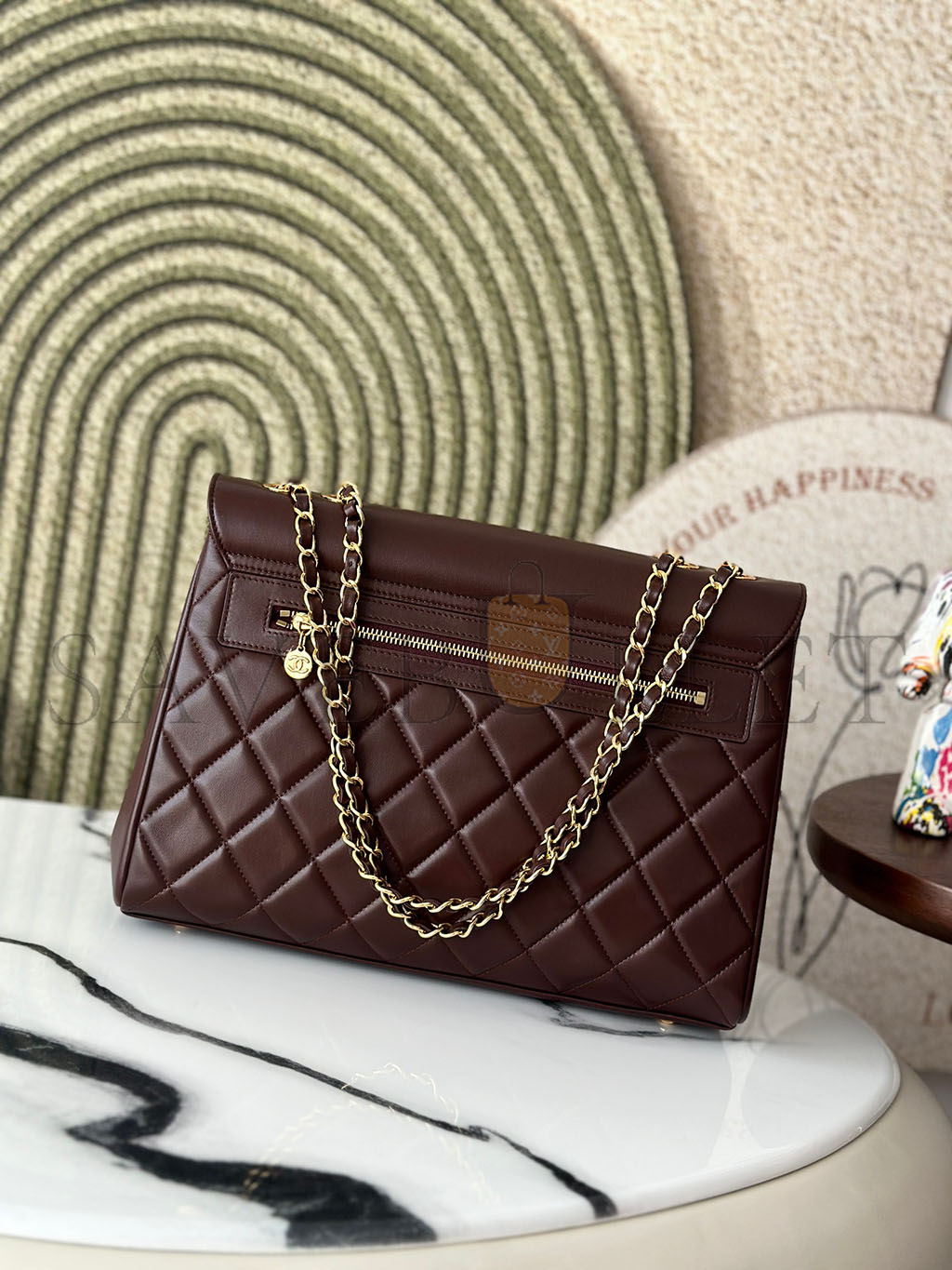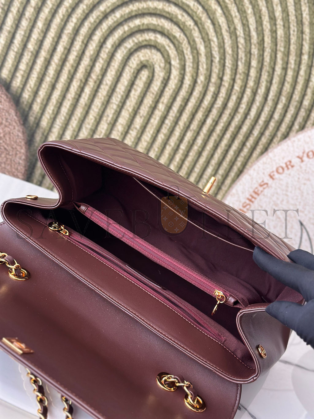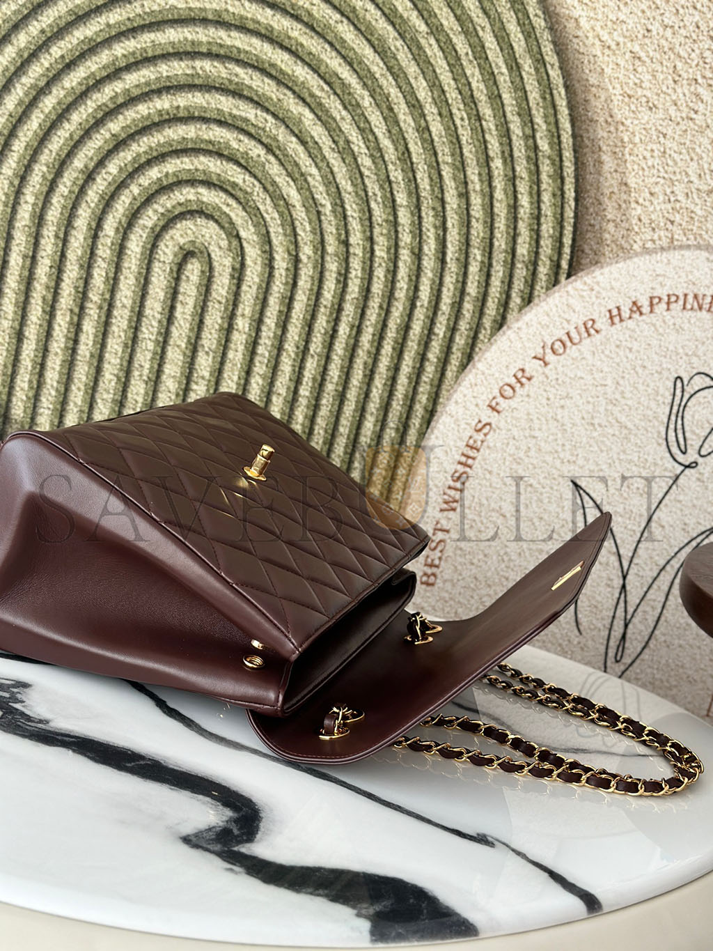 • CHANEL MASTER BURGUNDY QUILTED LEATHER VINTAGE CC FLAP BAG A2215 (33*23*11cm)