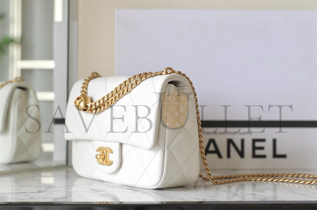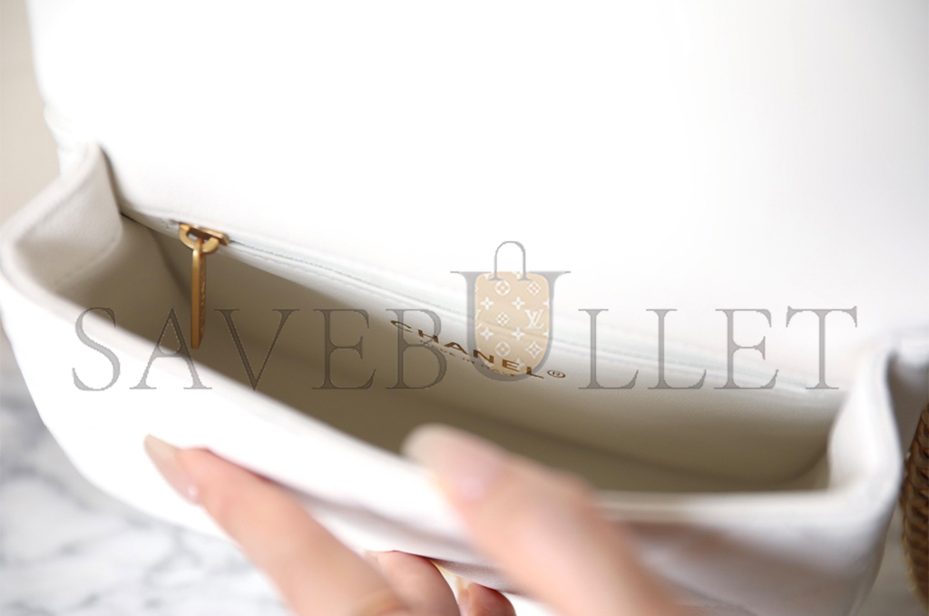 CHANEL MASTER HEART BUCKLE FLAP BAG WHITE MEDIUM (20*14*8cm)