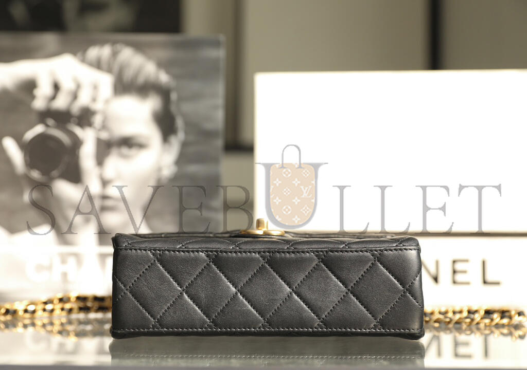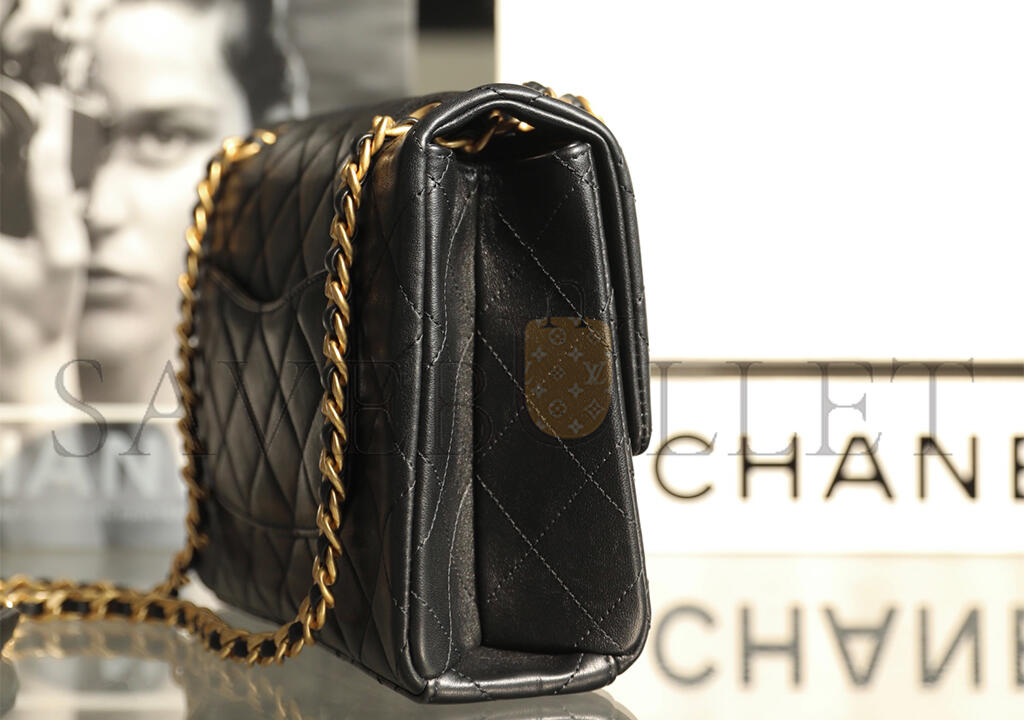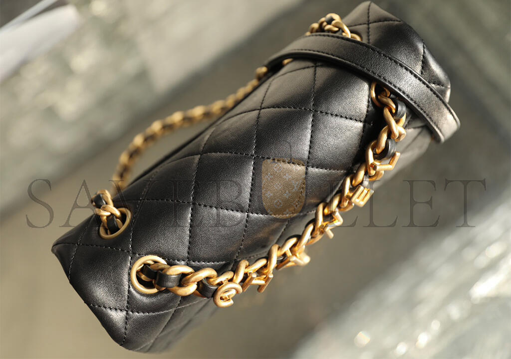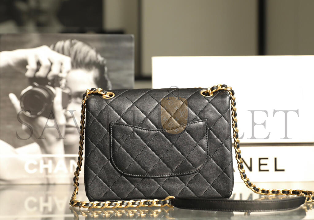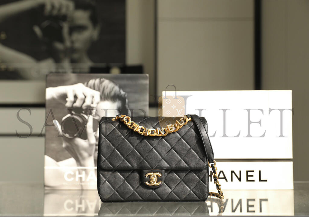 • CHANEL MASTER LAMBSKIN QUILTED CHAINE LETTRE SQUARE FLAP BLACK (23*17*8cm)