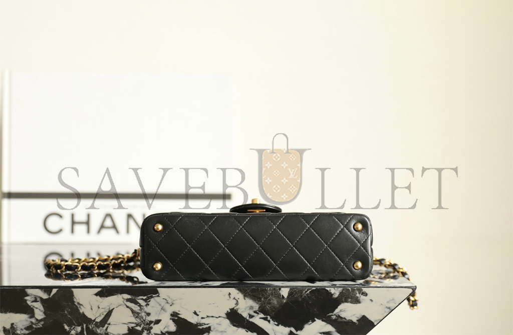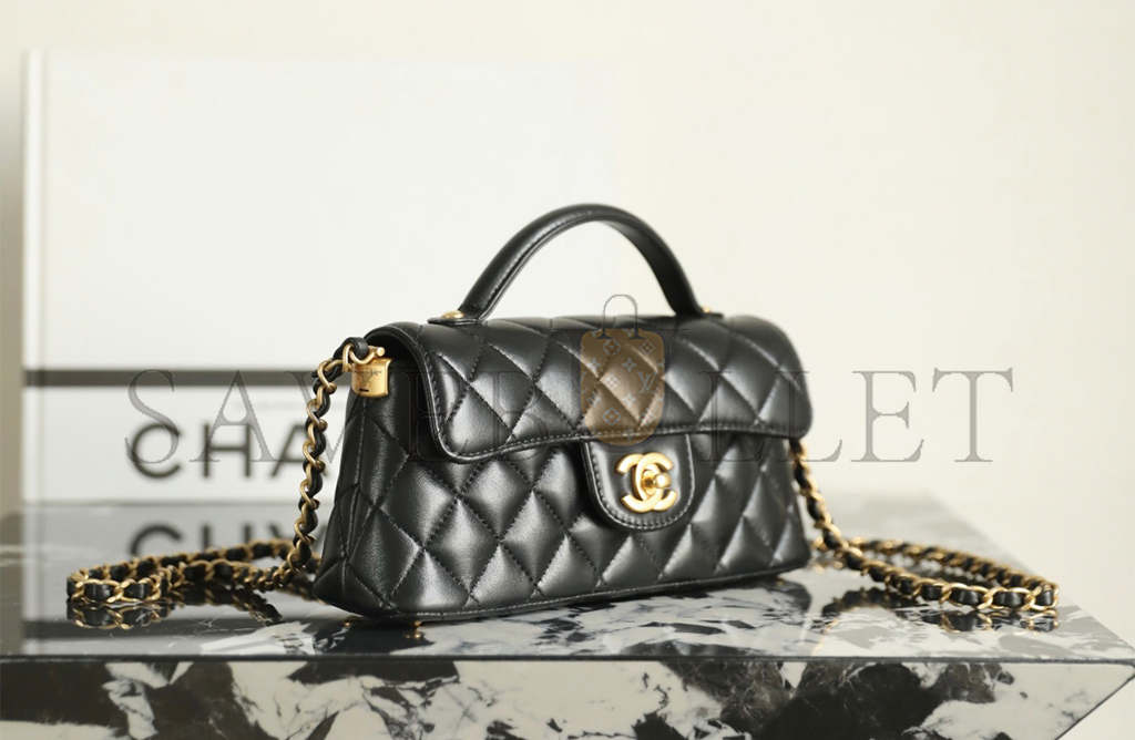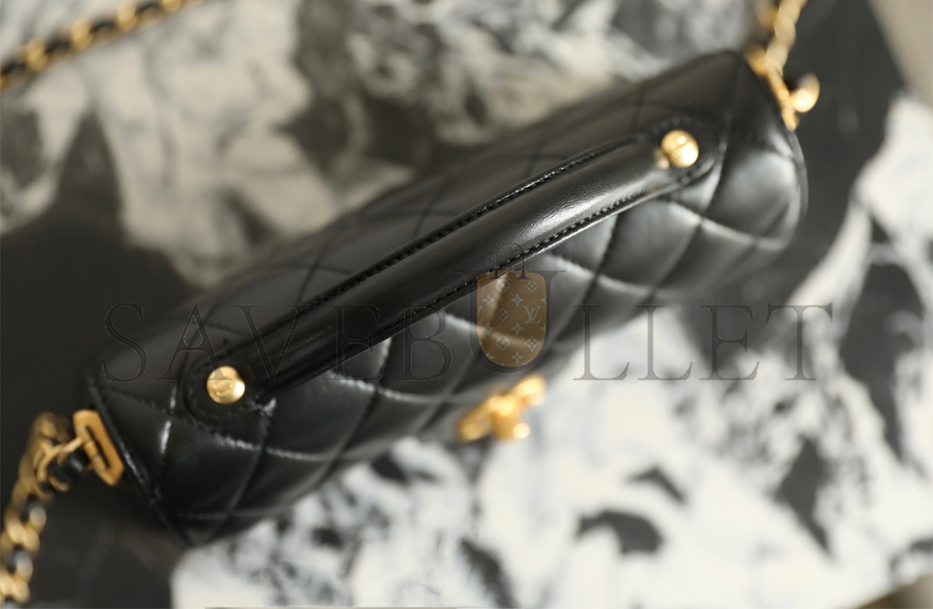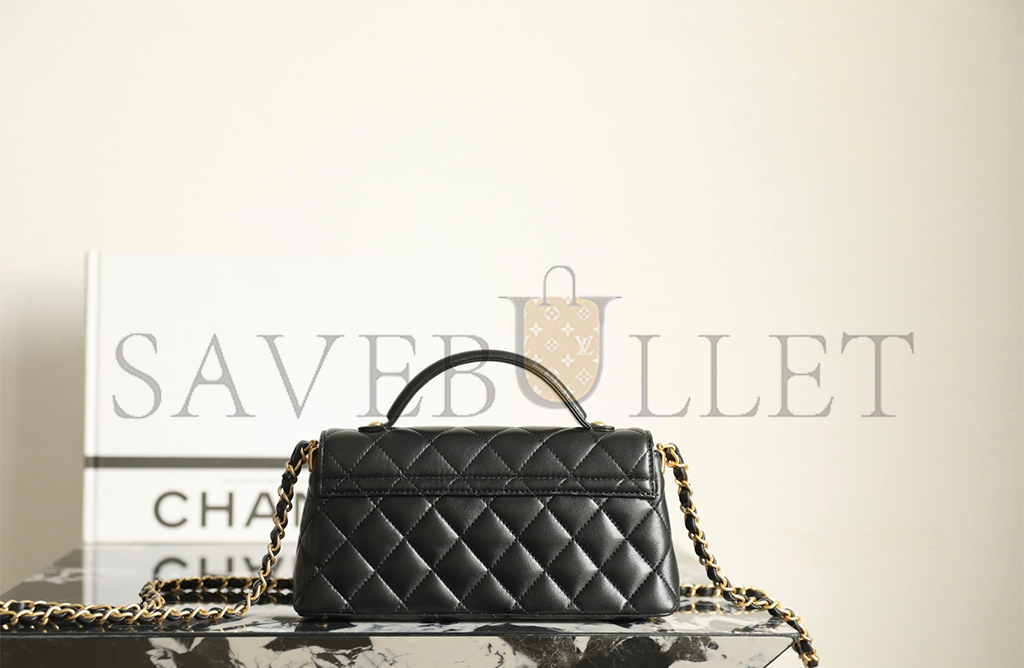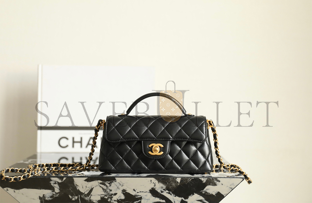 • CHANEL MASTER LAMBSKIN QUILTED MINI FLAP TOP HANDLE BAG BLACK AS5354 (22*11.5*6cm)