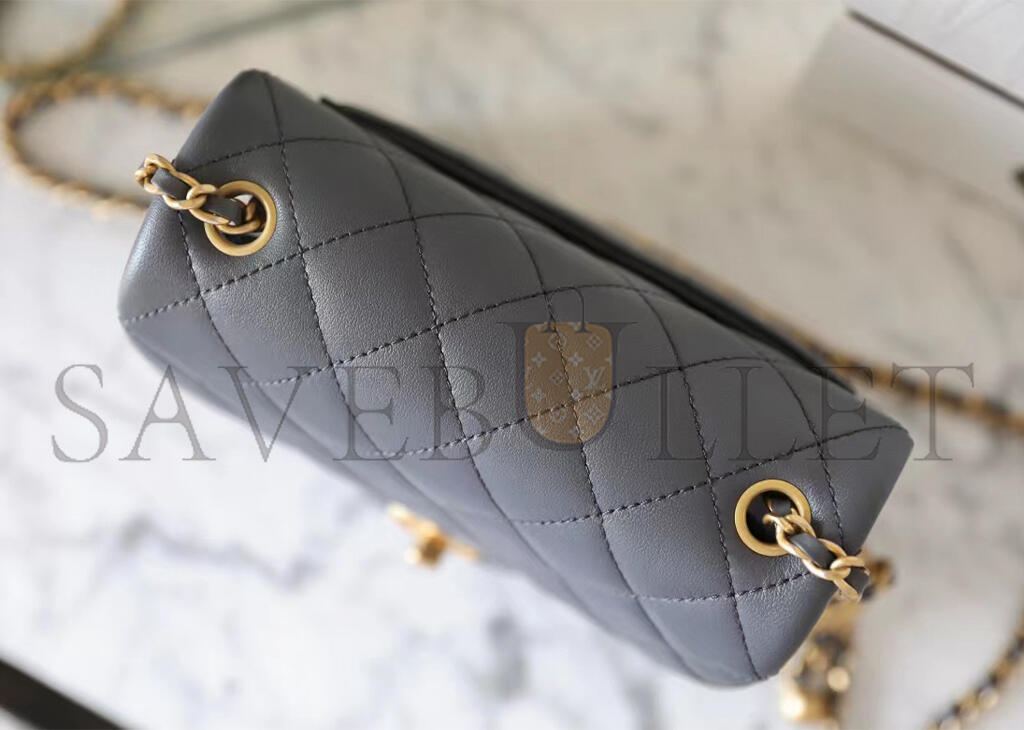• CHANEL MASTER LAMBSKIN QUILTED MINI PEARL CRUSH FLAP LIGHT GREY (18*13*7cm)
