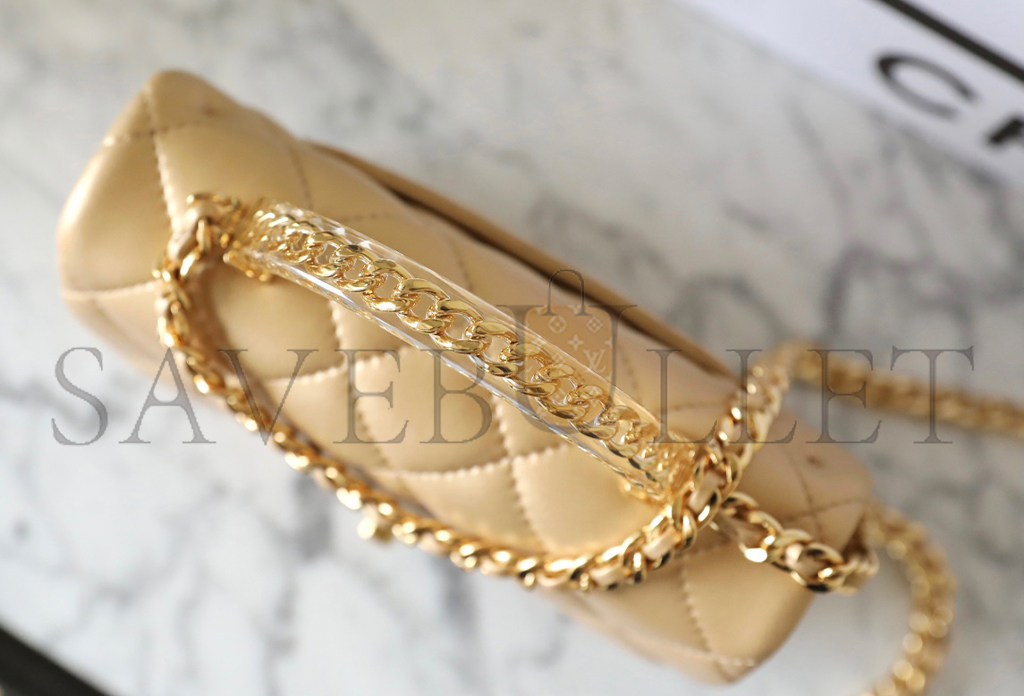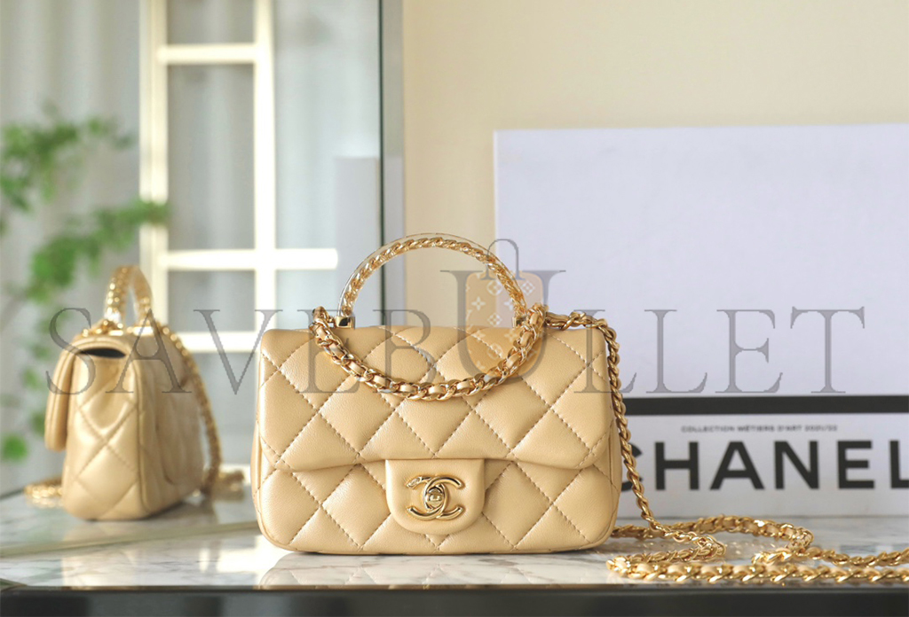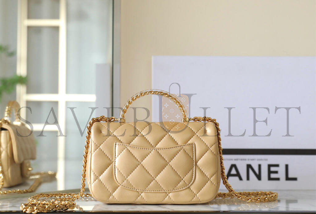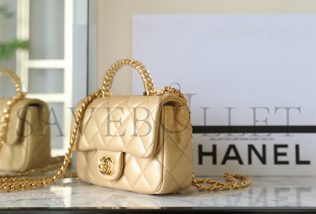 • CHANEL MASTER LAMBSKIN QUILTED MINI RESIN TOP HANDLE RECTANGULAR FLAP GOLD (19*12*6cm)