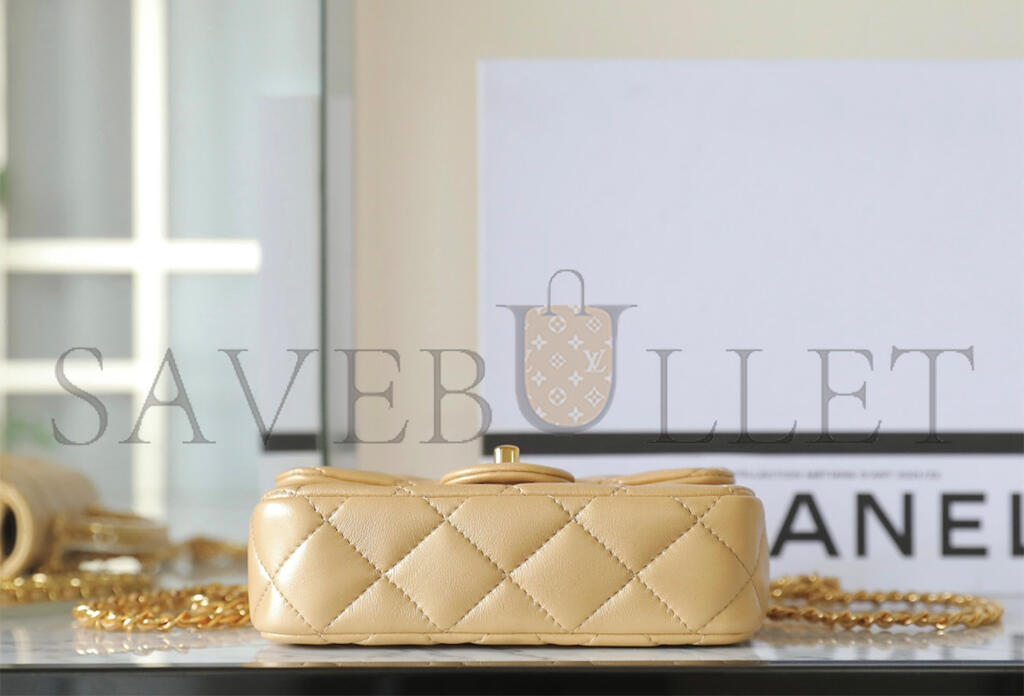 CHANEL MASTER LAMBSKIN QUILTED MINI RESIN TOP HANDLE RECTANGULAR FLAP GOLD (19*12*6cm)