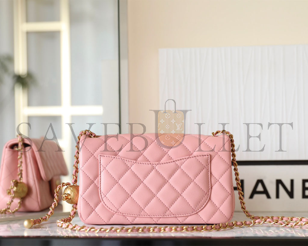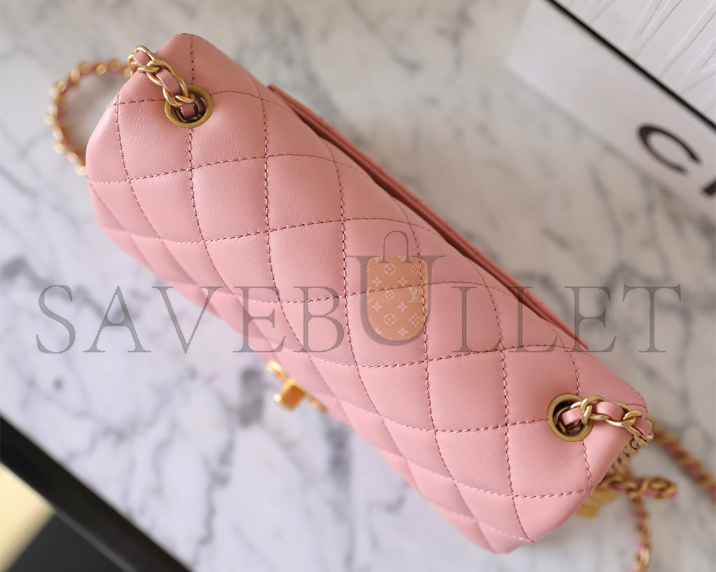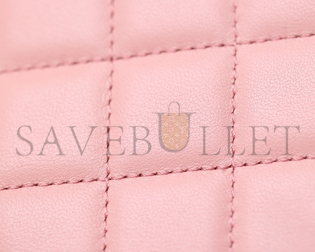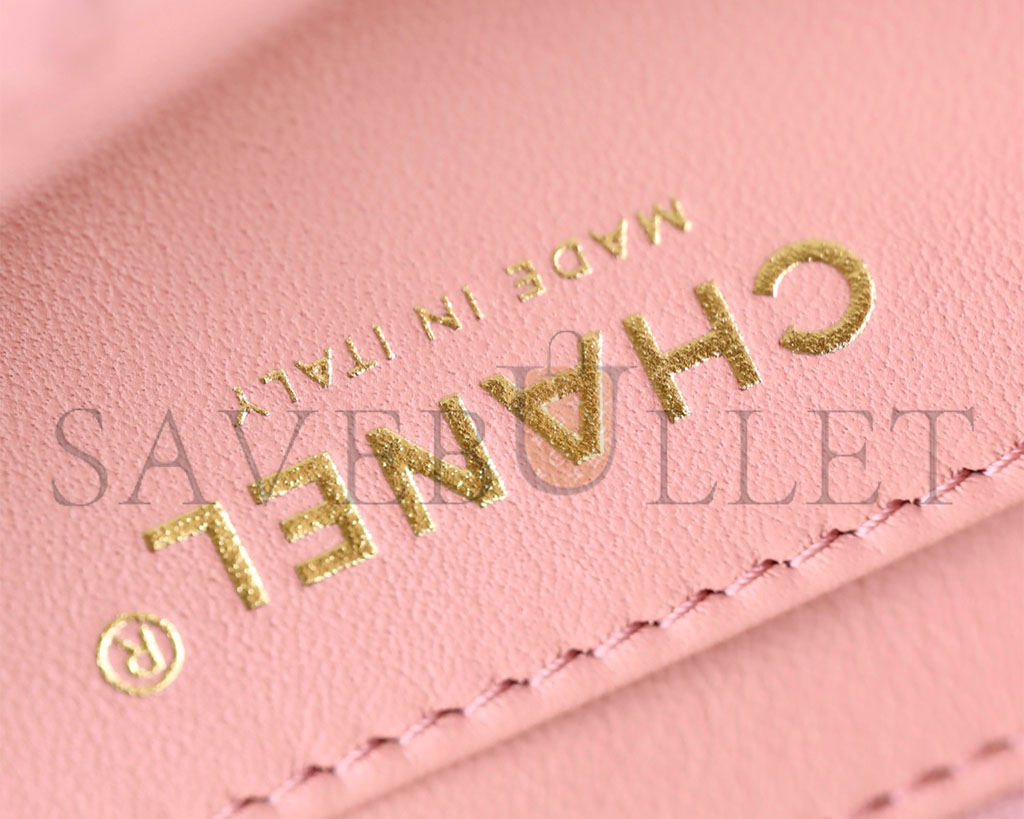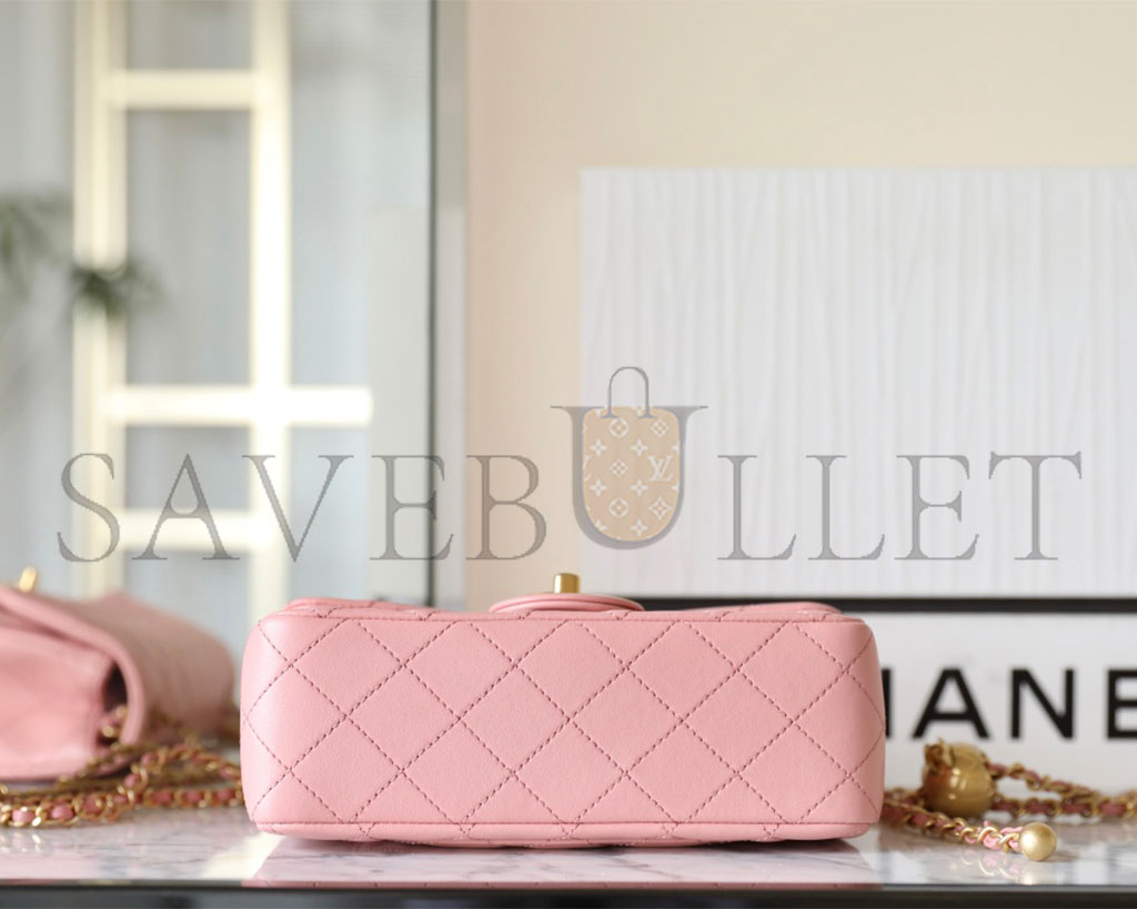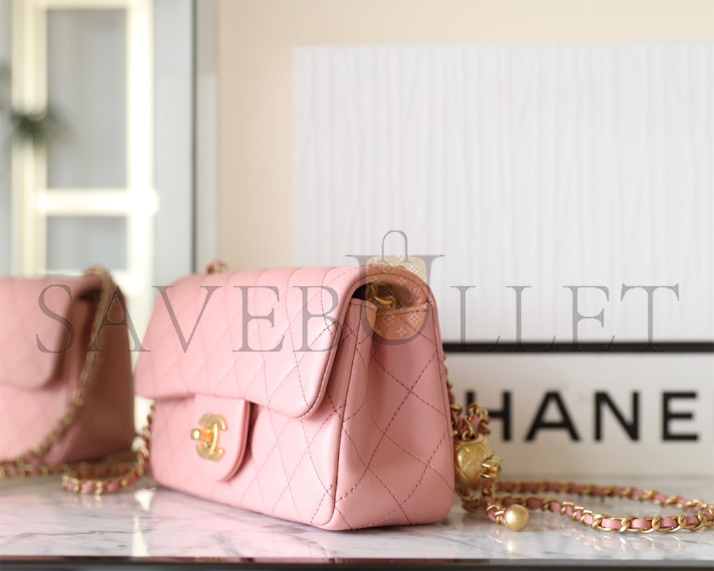 CHANEL MASTER LARGE MINI PEARL EMBOSSED RECTANGULAR FLAP DARK PINK LAMBSKIN BRUSHED GOLD HARDWARE (20*13*7cm)