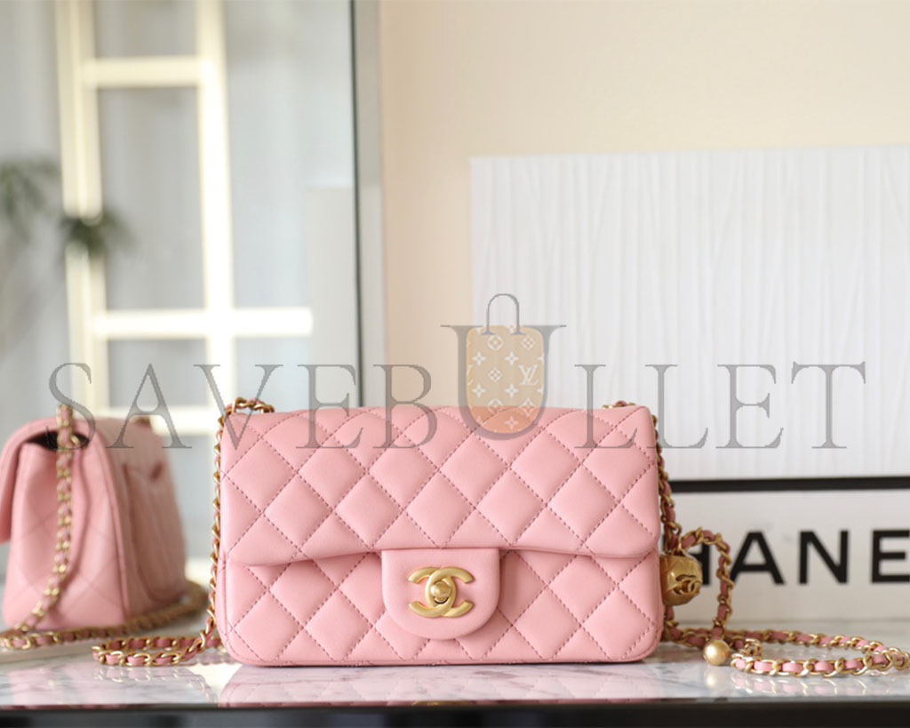 • CHANEL MASTER LARGE MINI PEARL EMBOSSED RECTANGULAR FLAP DARK PINK LAMBSKIN BRUSHED GOLD HARDWARE (20*13*7cm)