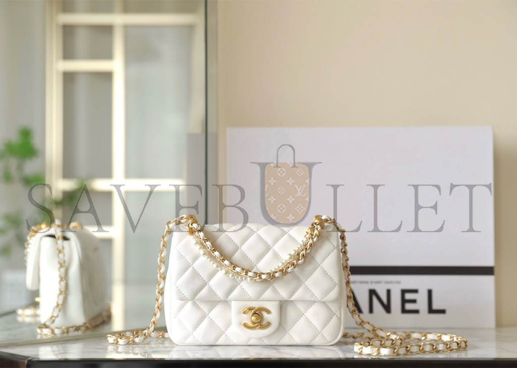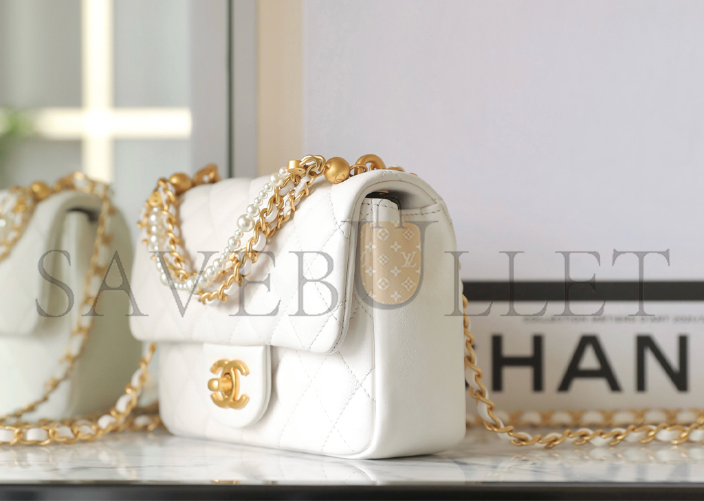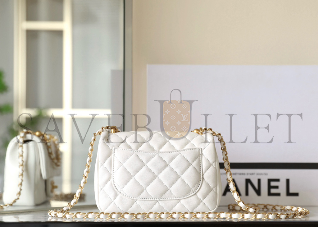CHANEL MASTER MINI FLAP PEARL TWIST WHITE (17*12.5*5cm)