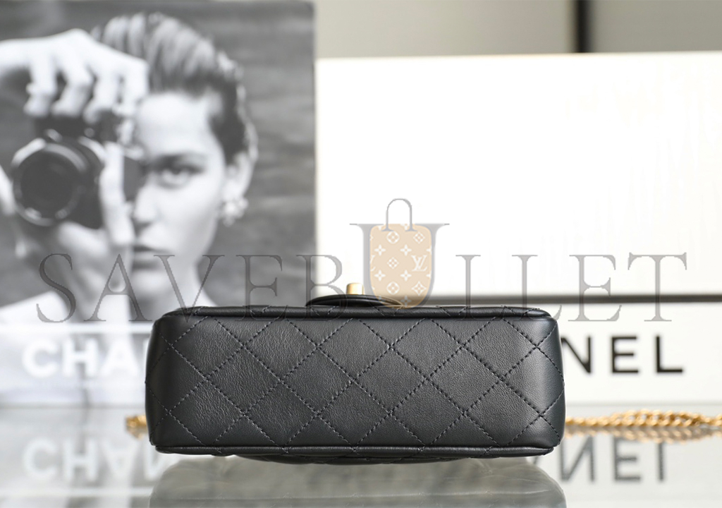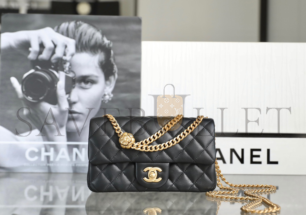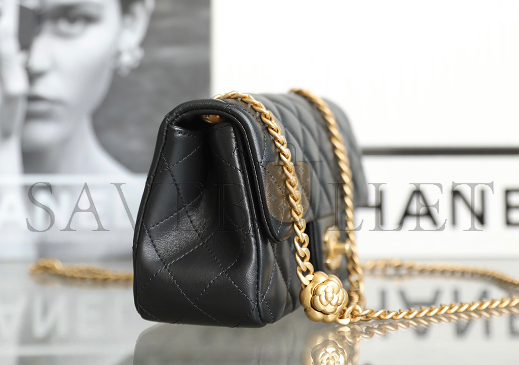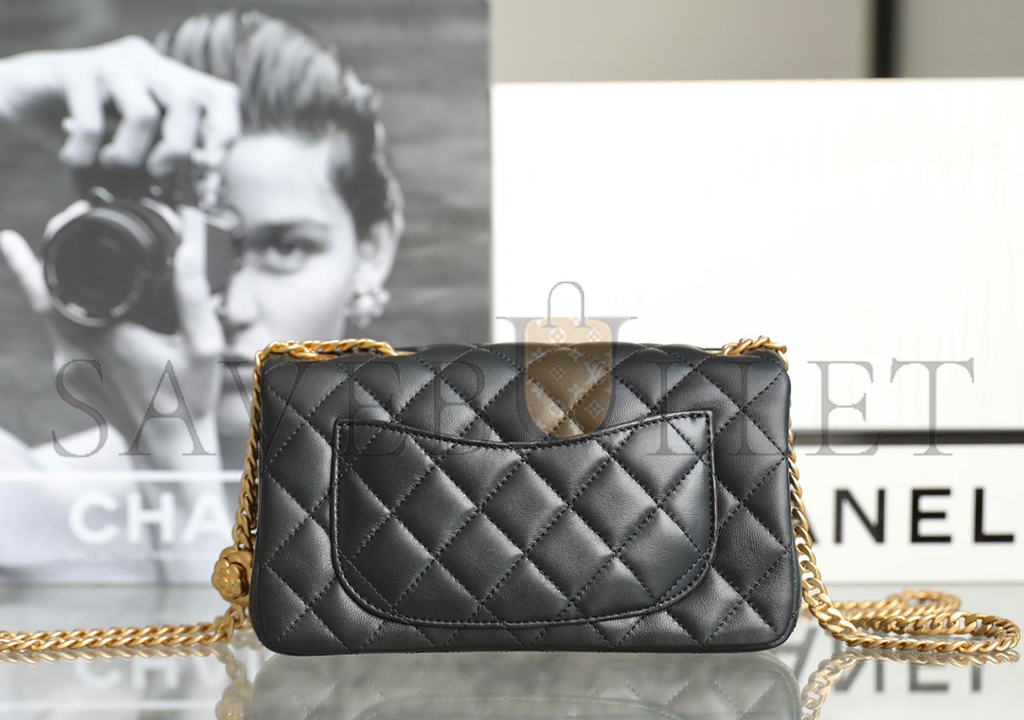 CHANEL MASTER SHEEPSKIN CHAIN BAG SHOULDER BAG CROSSBODY BAG MINI WOMEN'S BLACK (20*13*7cm)