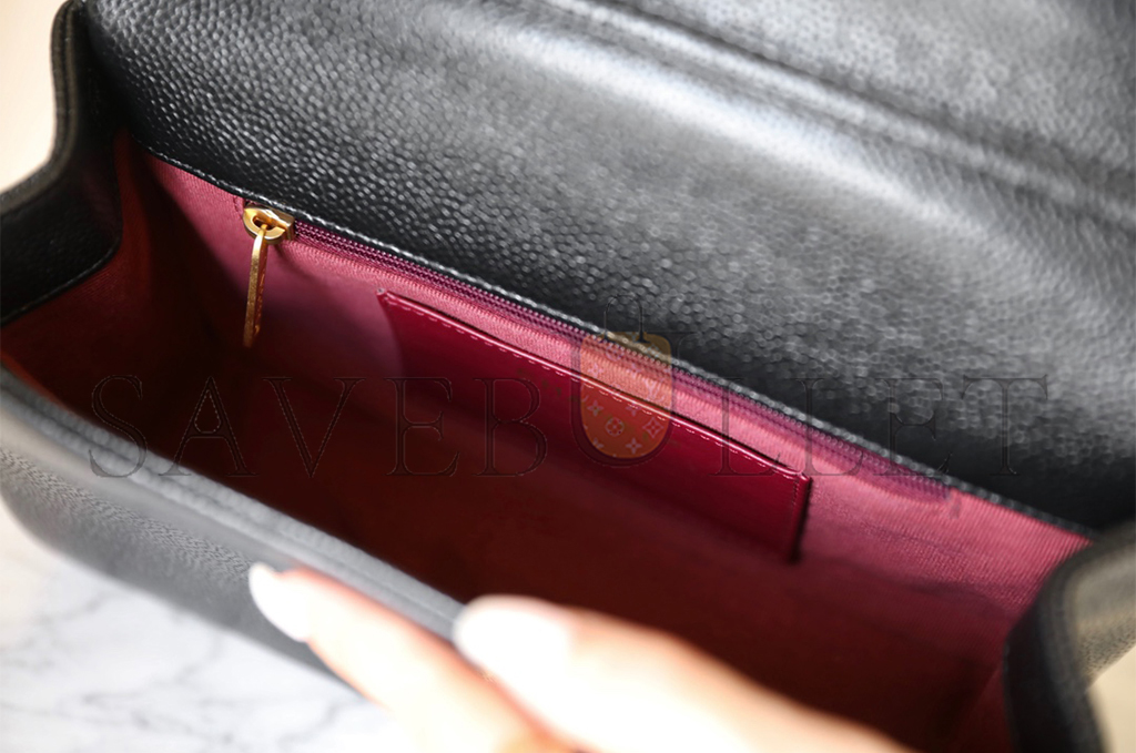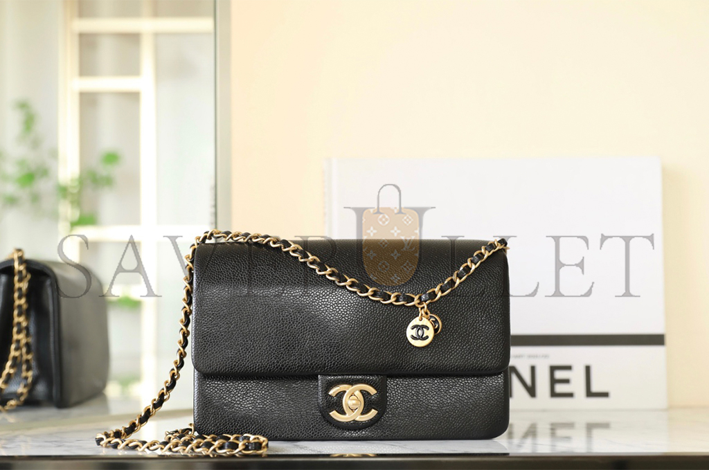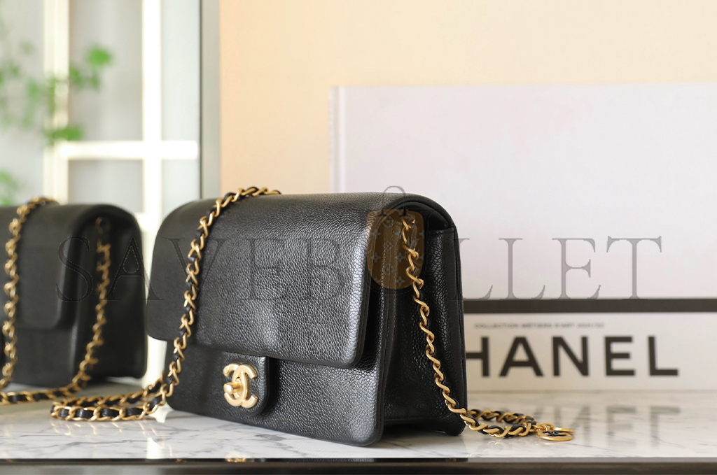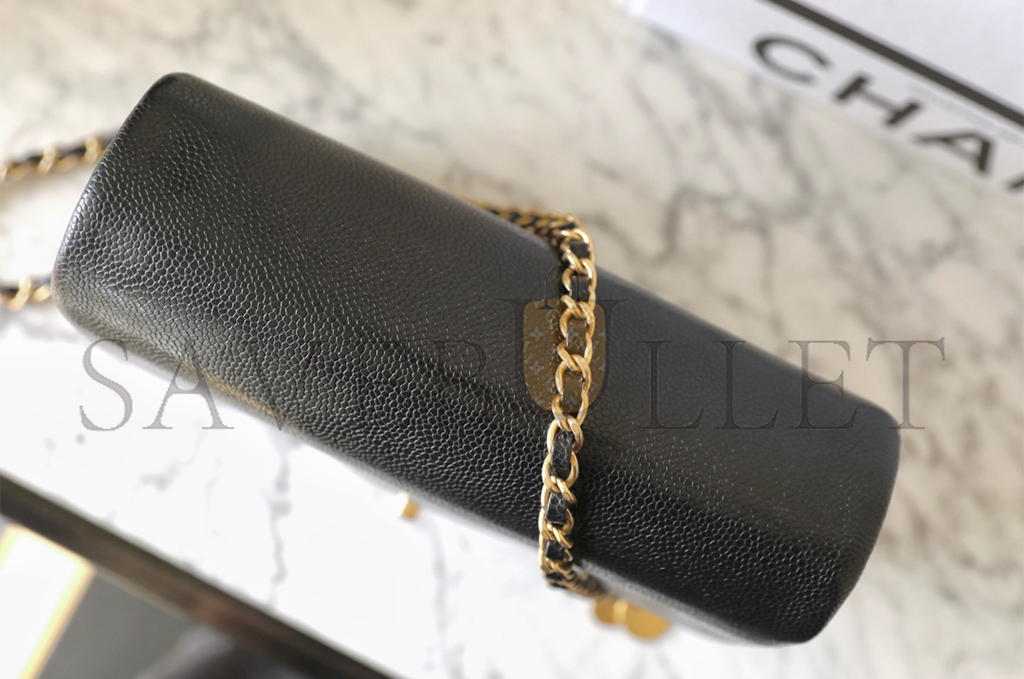 • CHANEL MASTER SMALL FLAP BAG GRAINED SHINY CALFSKIN & GOLD-TONE METAL AS5186 (23*15*8cm)