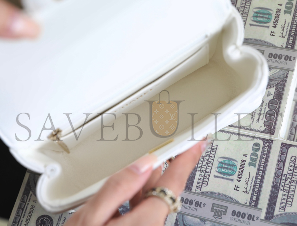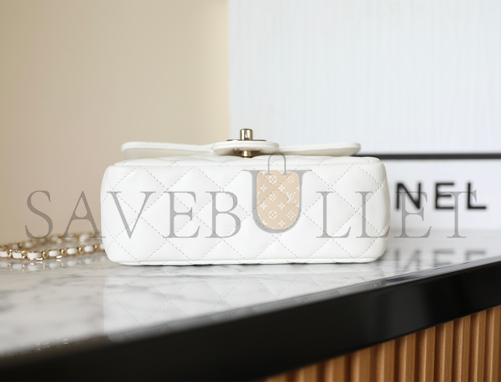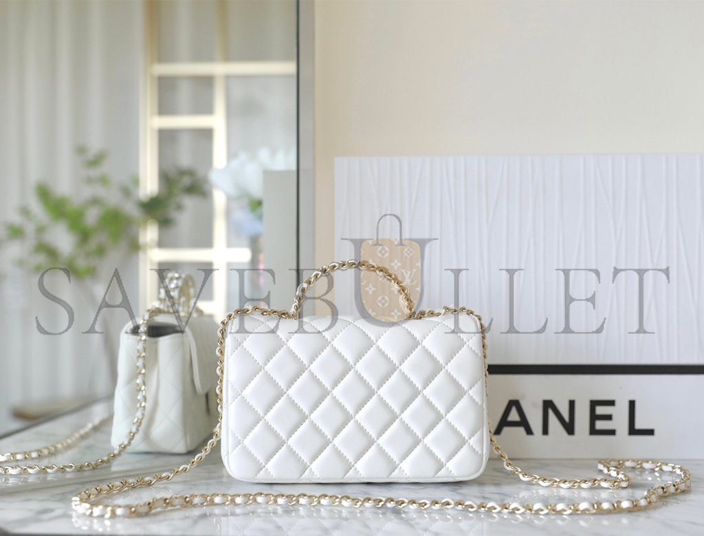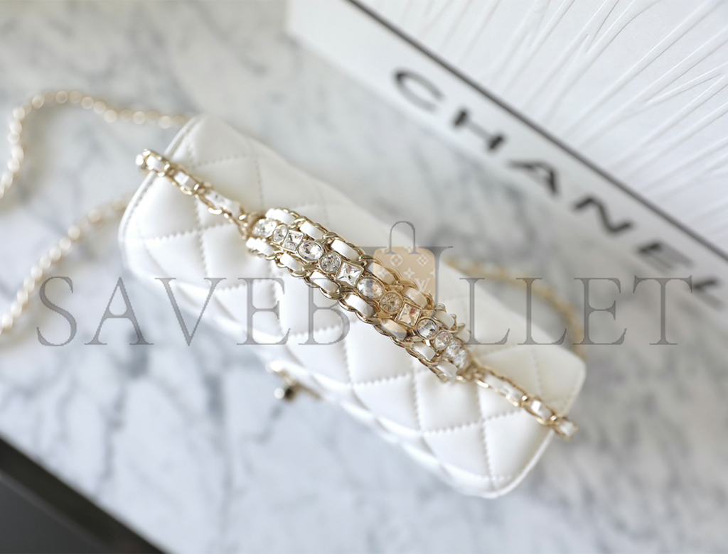 • CHANEL MASTER WHITE CRYSTAL TOP HANDLE FLAP LIGHT GOLD HARDWARE (18*11.5*6.5cm)