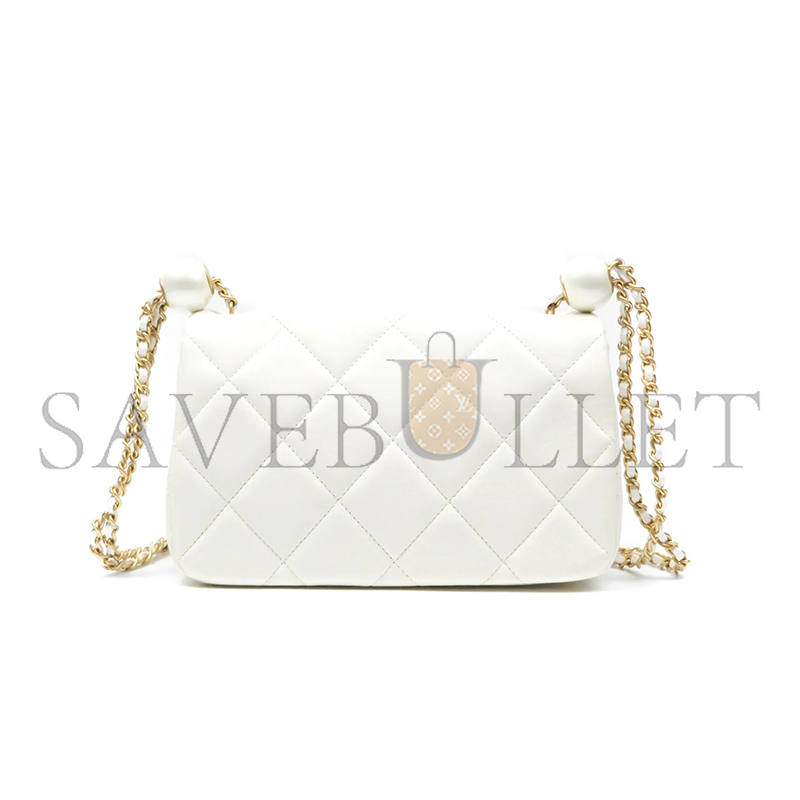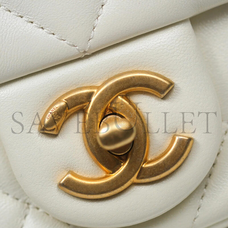 CHANEL MASTER GOLD BALL FLAP BAG LARGE MINI WHITE (20*13*7cm)