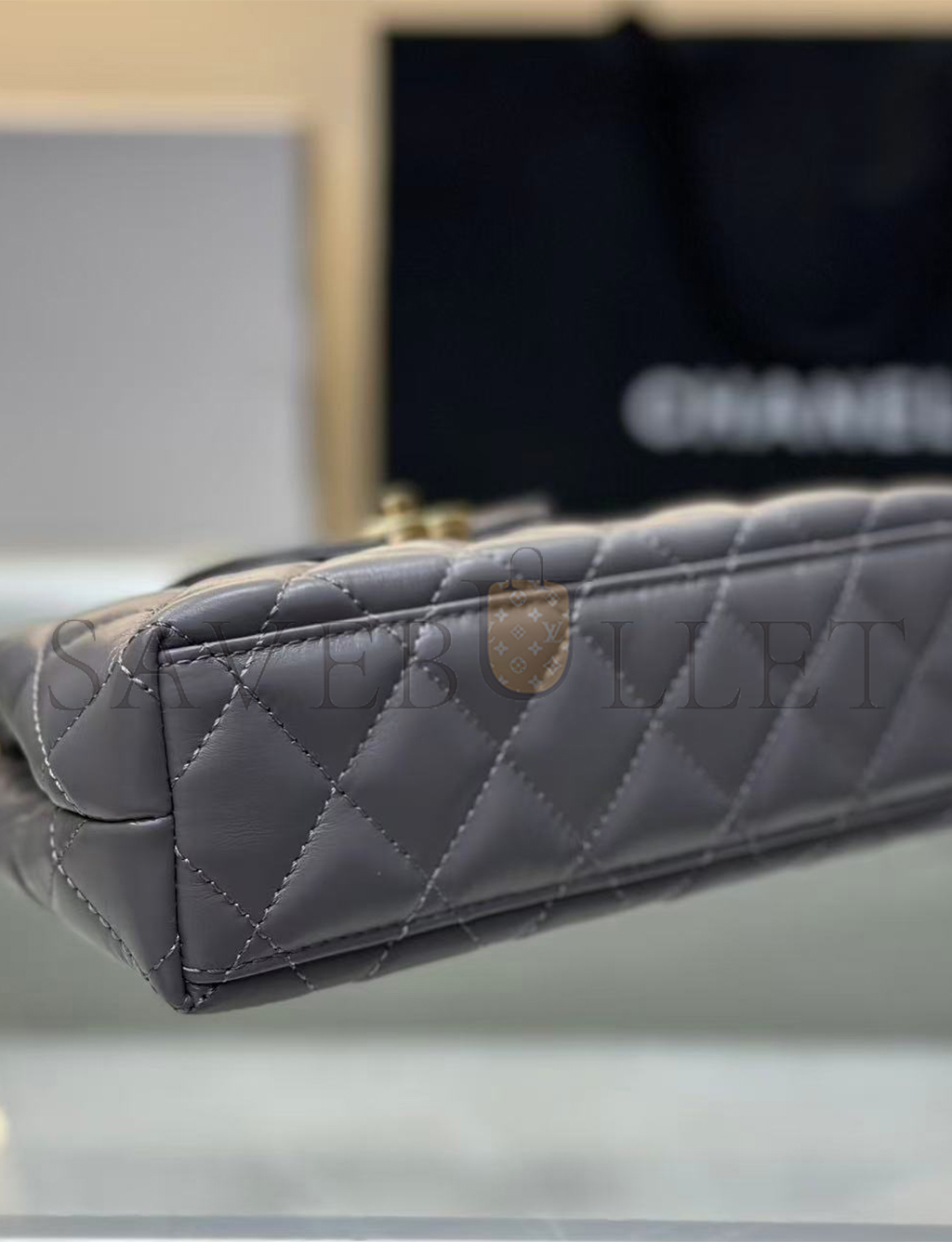 • CHANEL GREY QUILTED CALFSKIN MINI KELLY BRUSHED GOLD HARDWARE AS4416 (19*13*7cm)
