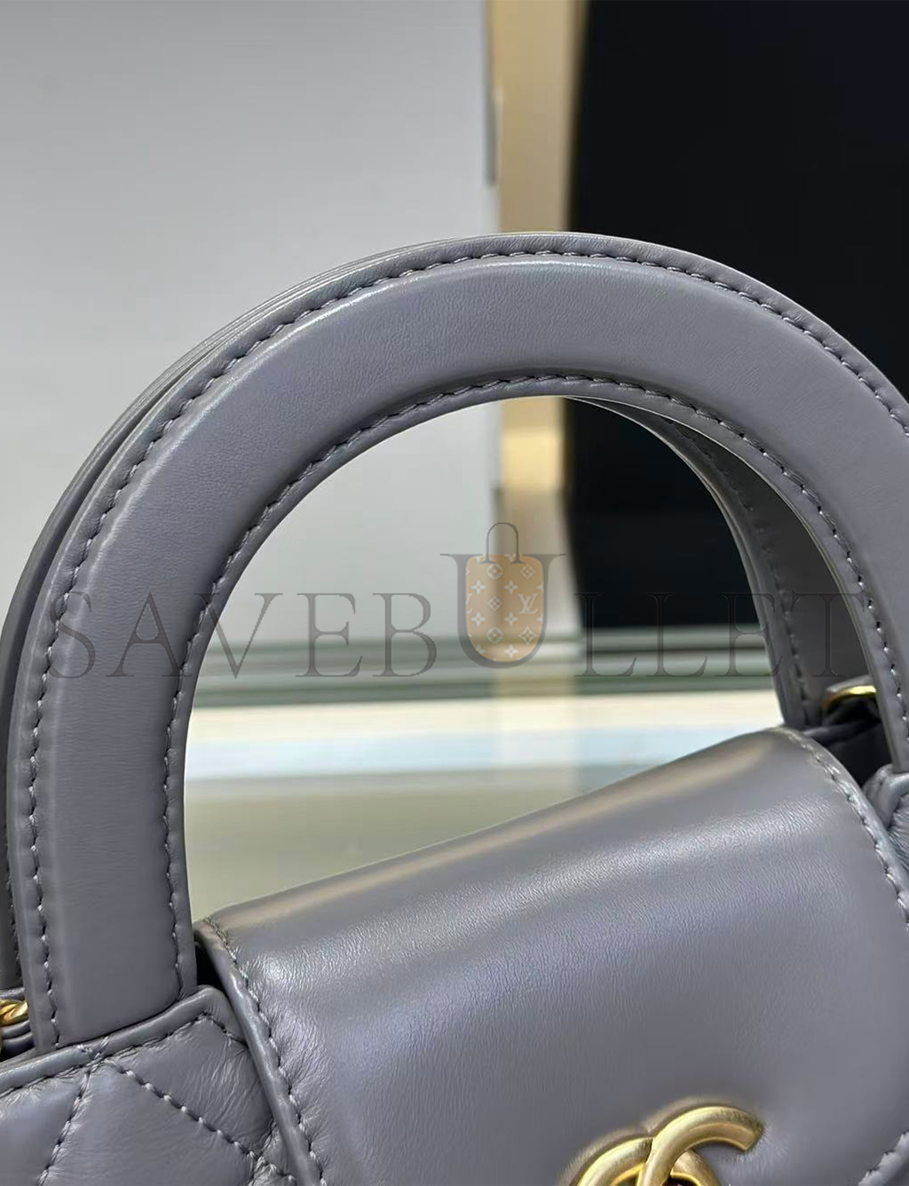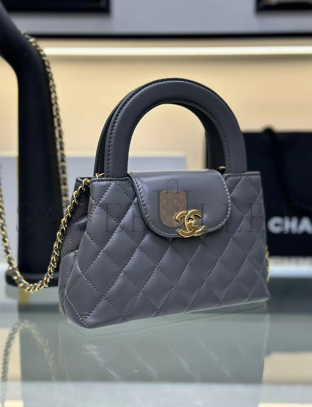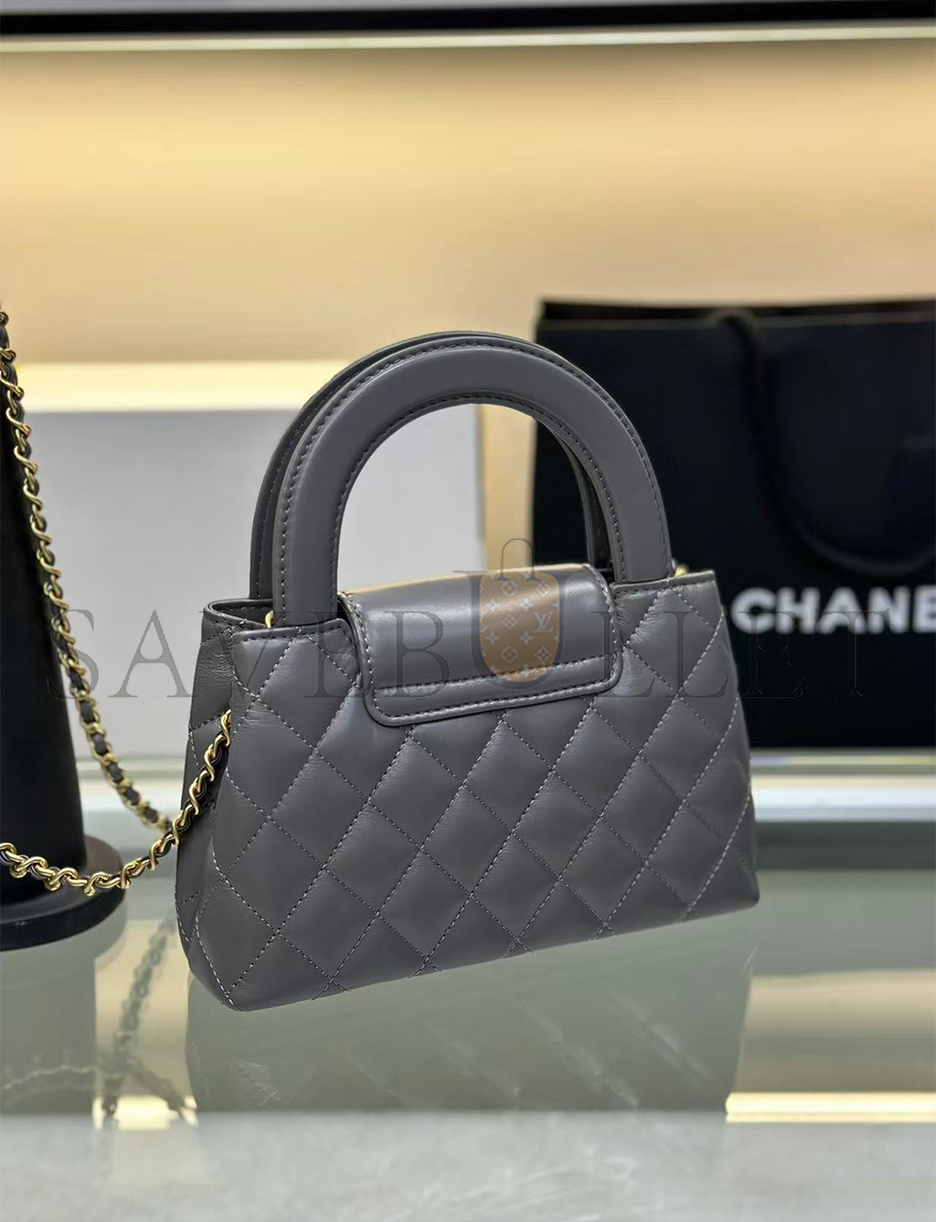 CHANEL GREY QUILTED CALFSKIN MINI KELLY BRUSHED GOLD HARDWARE AS4416 (19*13*7cm)