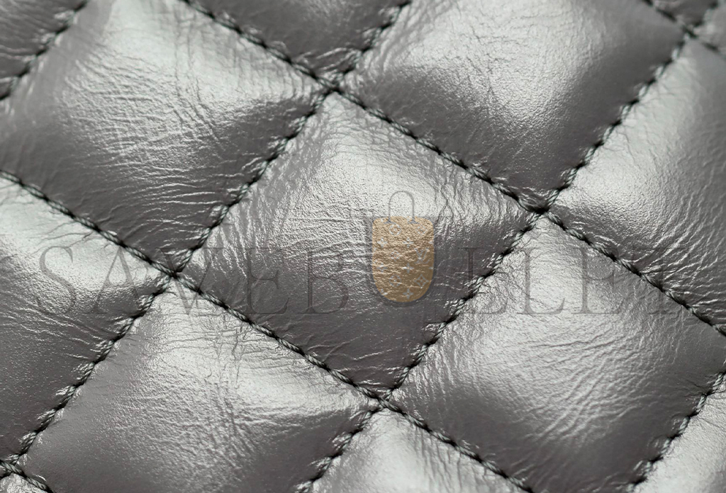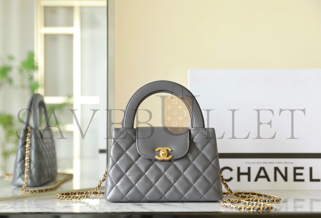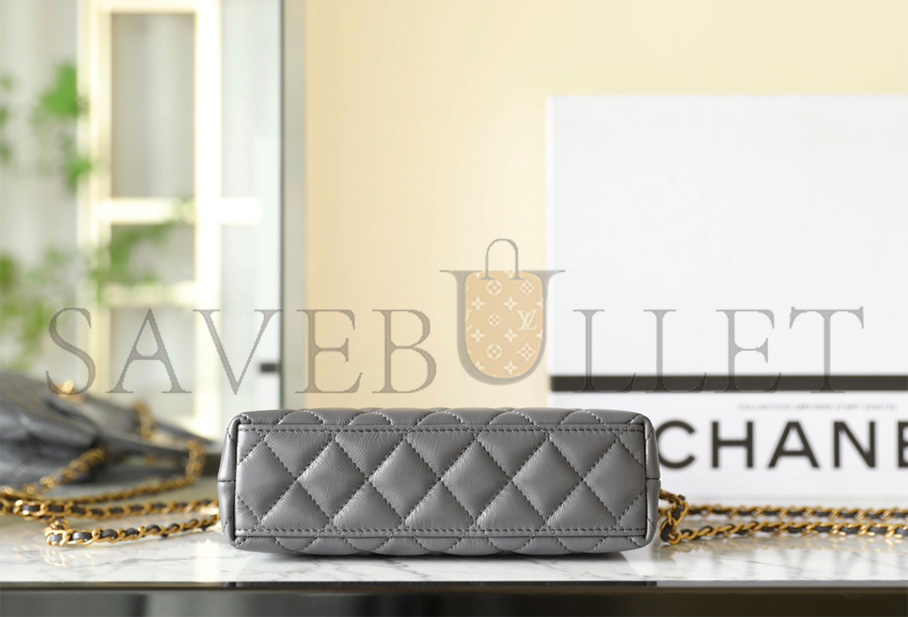 CHANEL MASTER KELLY BAG QUILTED GREY SHINY CALFSKIN GOLD HARDWARE (19*13*7cm)