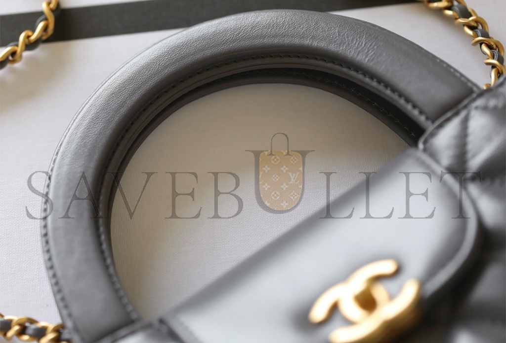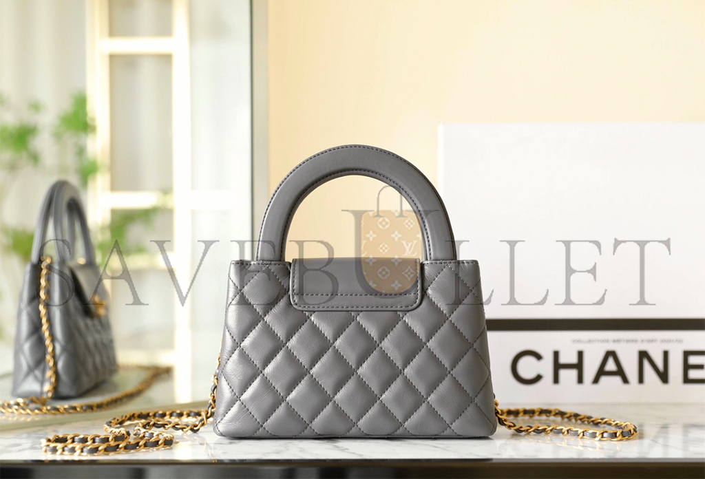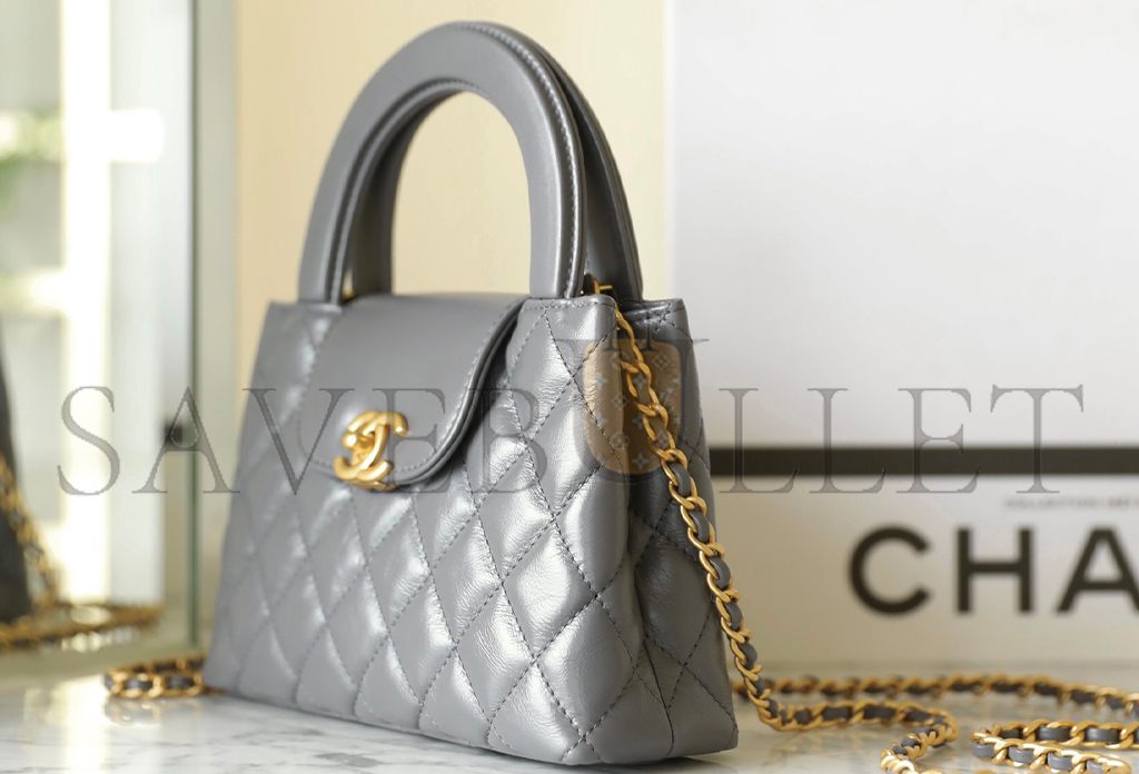 • CHANEL MASTER KELLY BAG QUILTED GREY SHINY CALFSKIN GOLD HARDWARE (19*13*7cm)