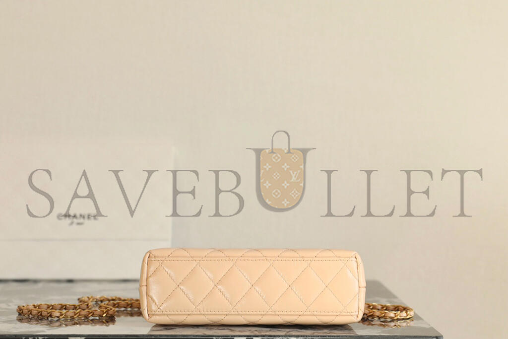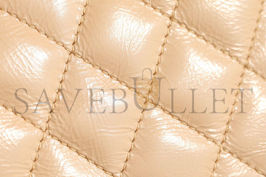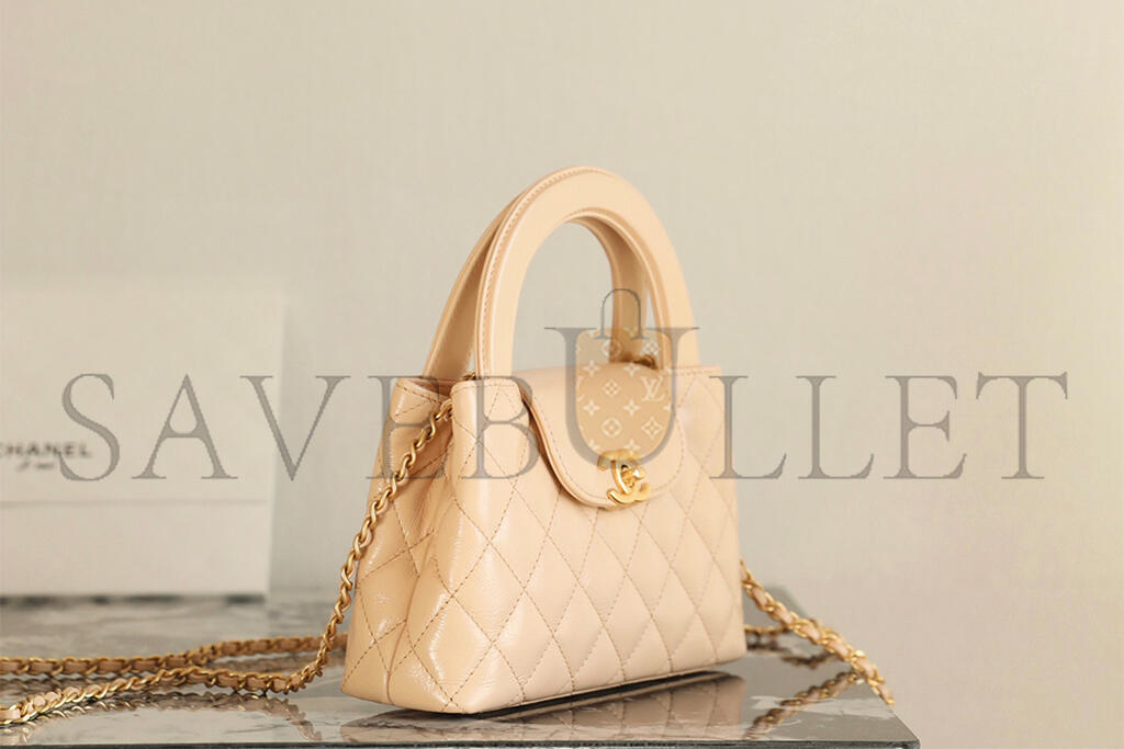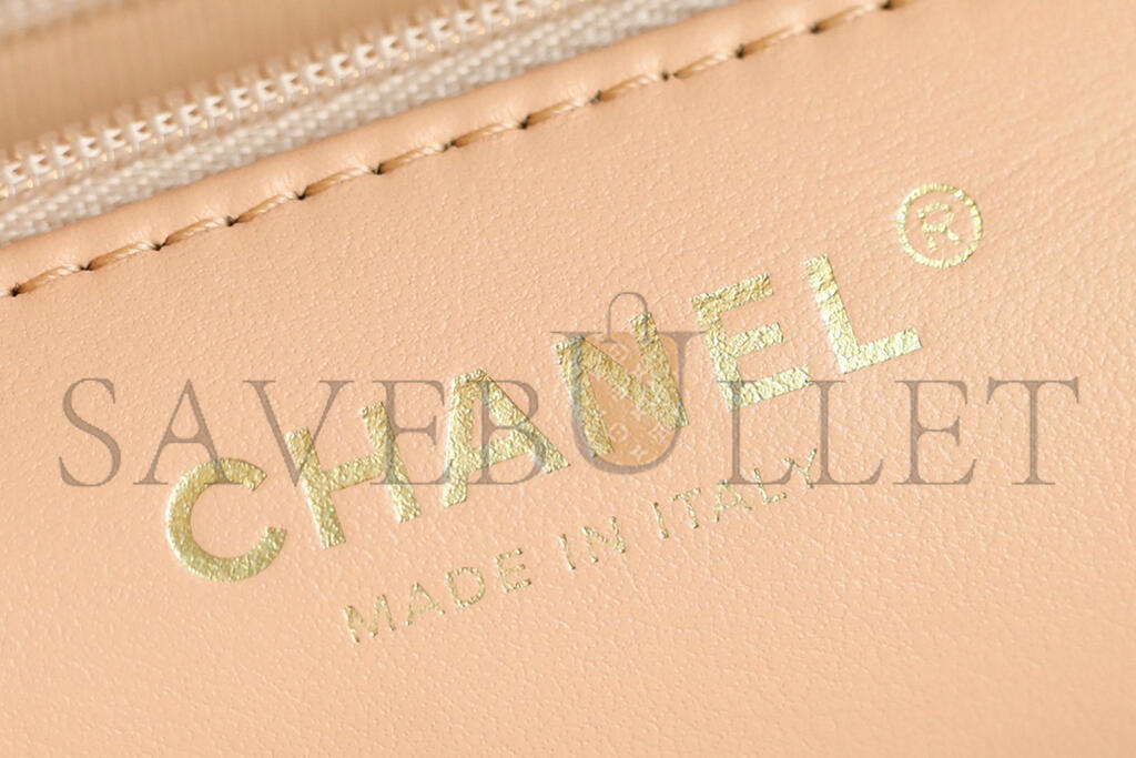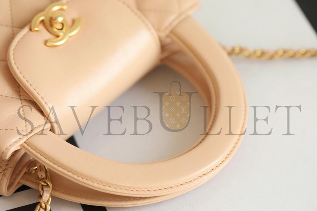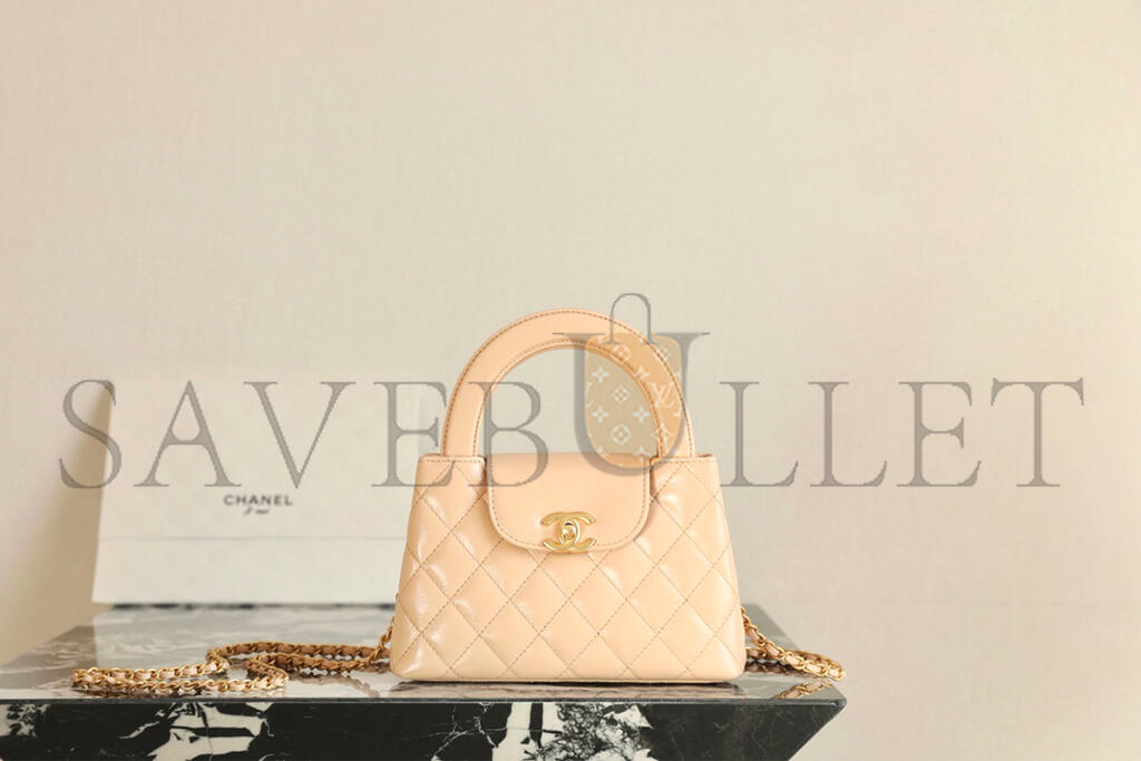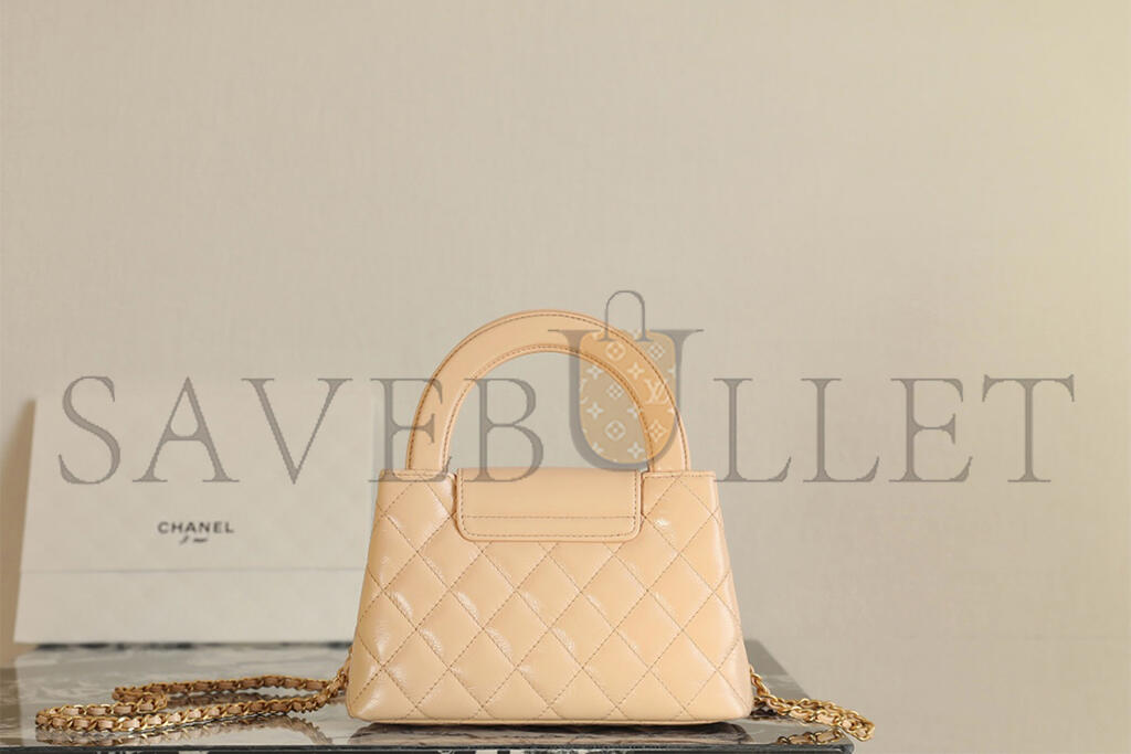CHANEL MASTER KELLY SHOPPER BEIGE SHINY CALFSKIN BRUSHED GOLD HARDWARE AS4416 (19*13*7cm)
