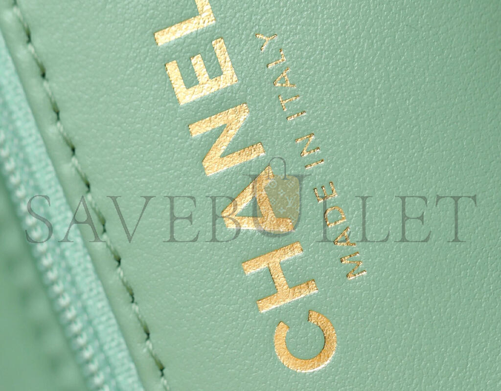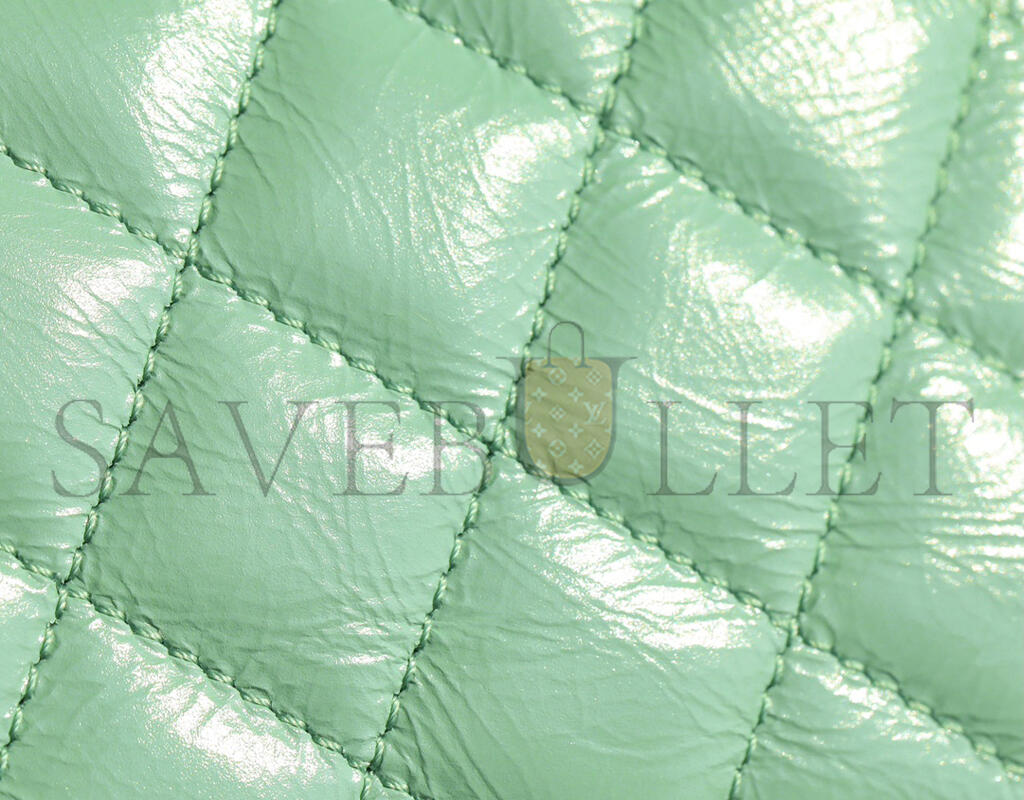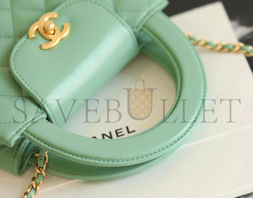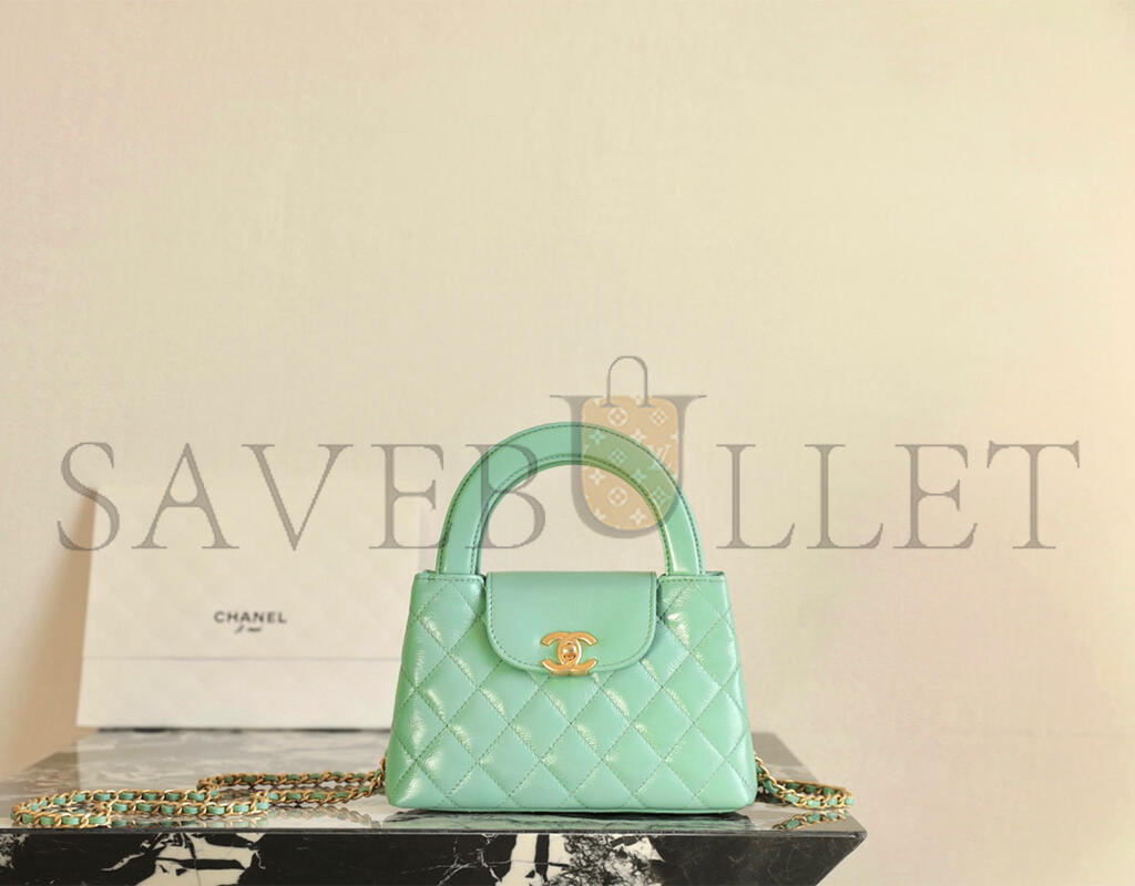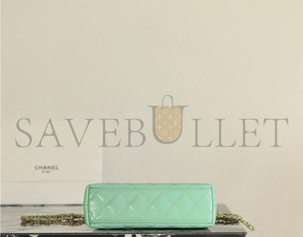 • CHANEL MASTER KELLY SHOPPER LIGHT GREEN SHINY CALFSKIN BRUSH GOLD HARDWARE (19*13*7cm)