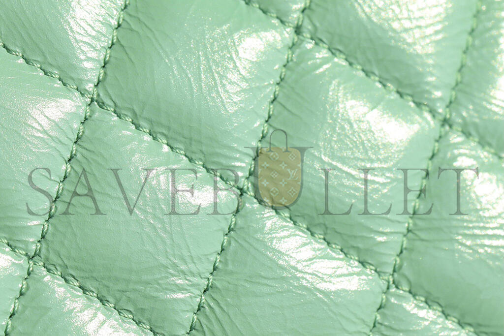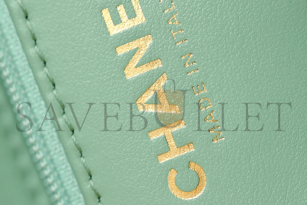 CHANEL MASTER KELLY SHOPPER LIGHT GREEN SHINY CALFSKIN BRUSHED GOLD HARDWARE AS4416 (19*13*7cm)