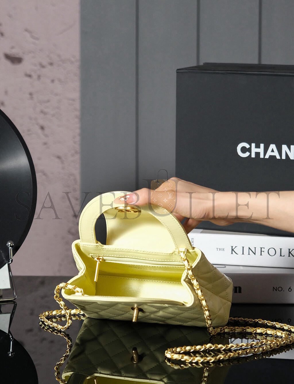 • CHANEL MASTER KELLY YELLOW SHINY CALFSKIN BRUSHED GOLD HARDWARE AS4416 (19*13*7cm)