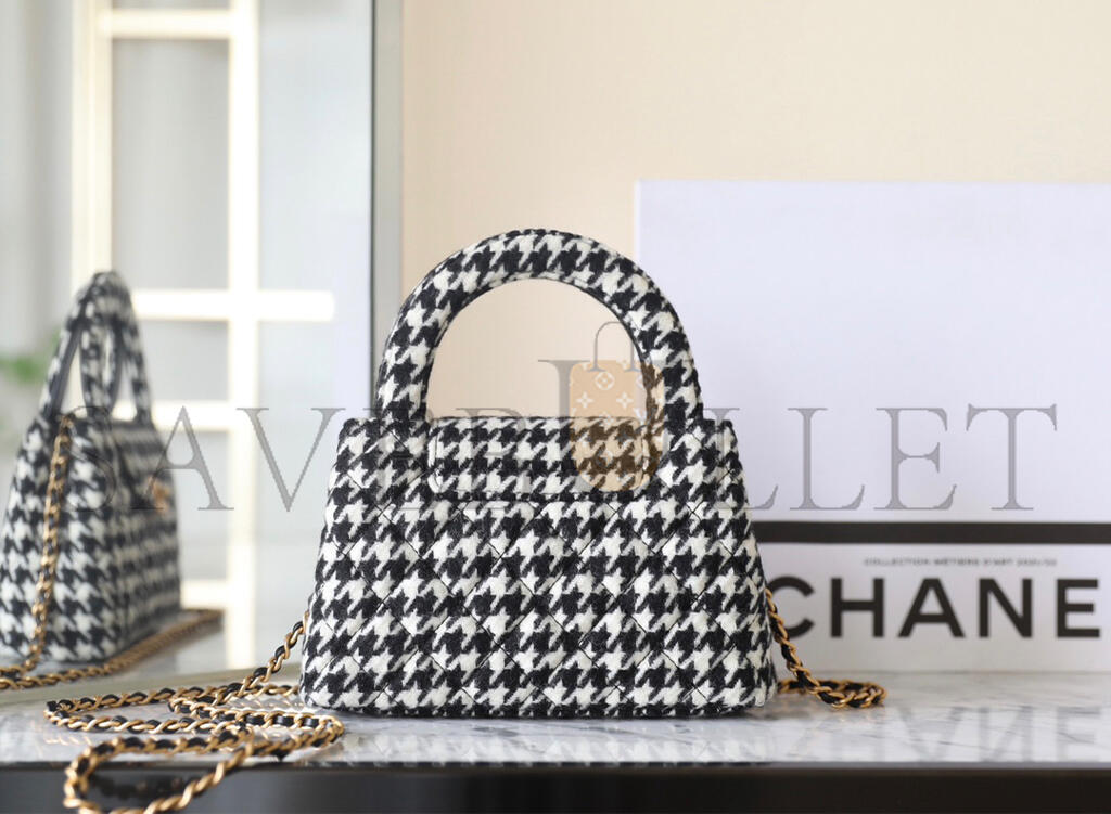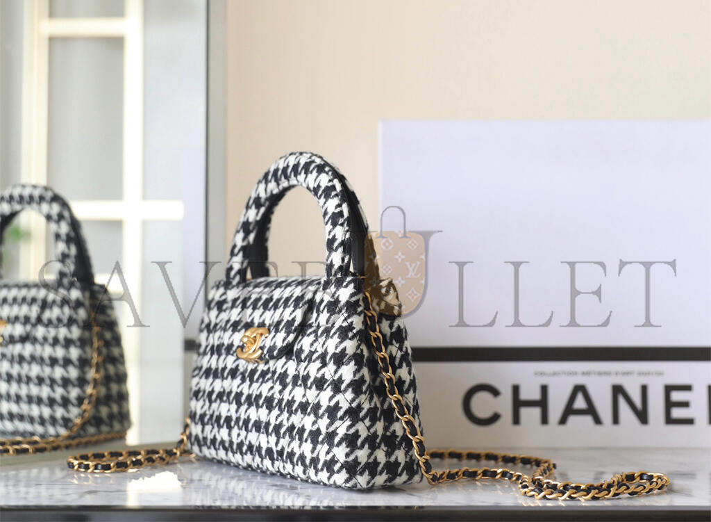 • CHANEL MASTER TWEED HOUNDSTOOTH QUILTED NANO KELLY SHOPPER (19*13*7cm)