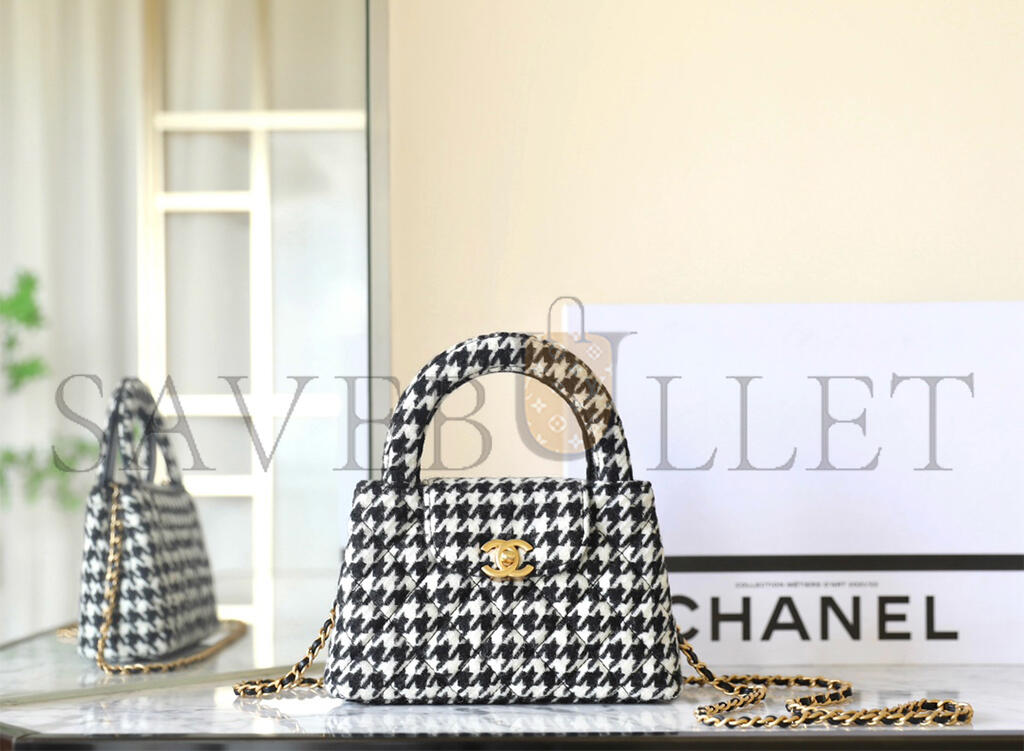 CHANEL MASTER TWEED HOUNDSTOOTH QUILTED NANO KELLY SHOPPER (19*13*7cm)