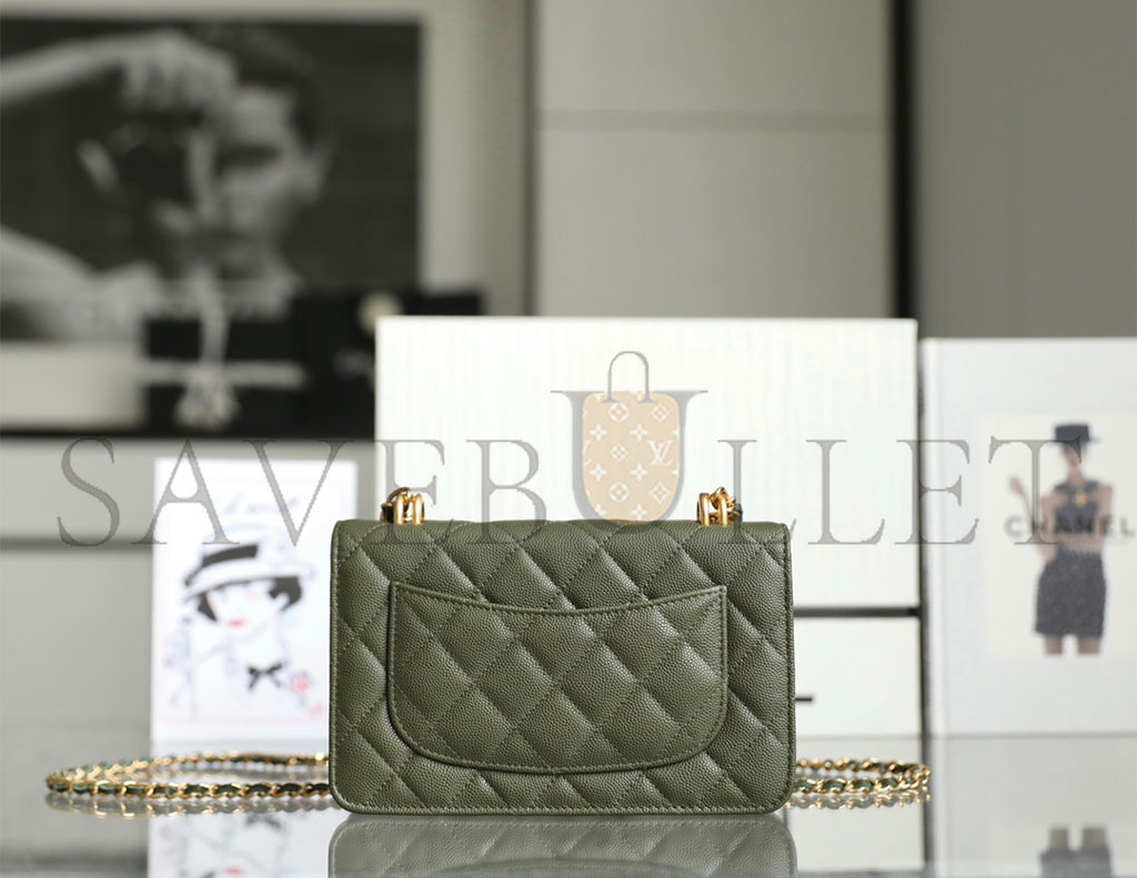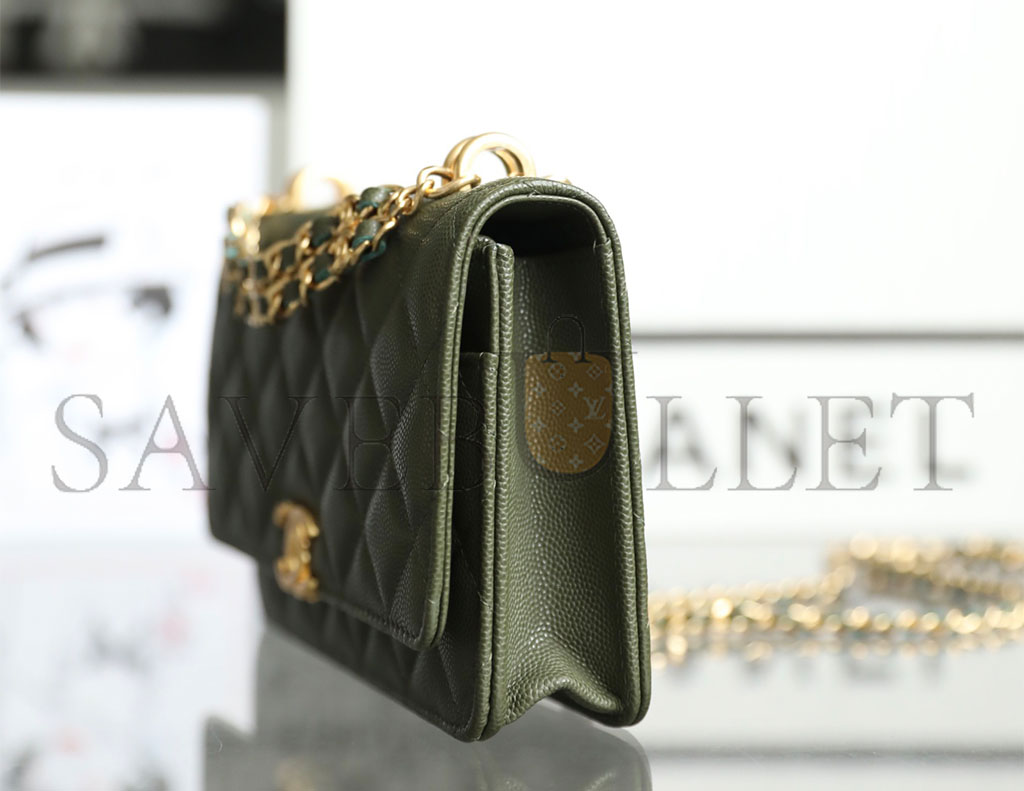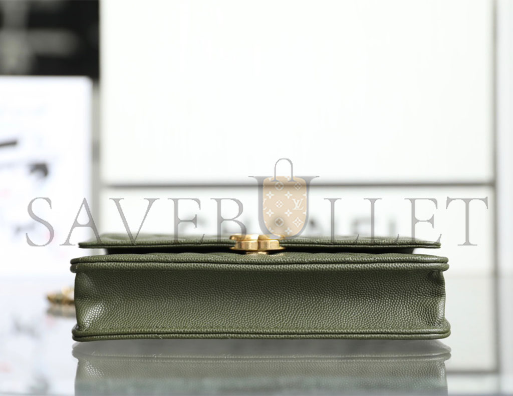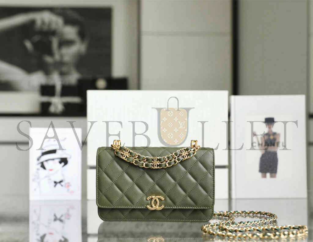 CHANEL MASTER WALLET ON CHAIN WOC DARK OLIVE GREEN CAVIAR GOLD HARDWARE AP3019 (19*12*3.5cm)