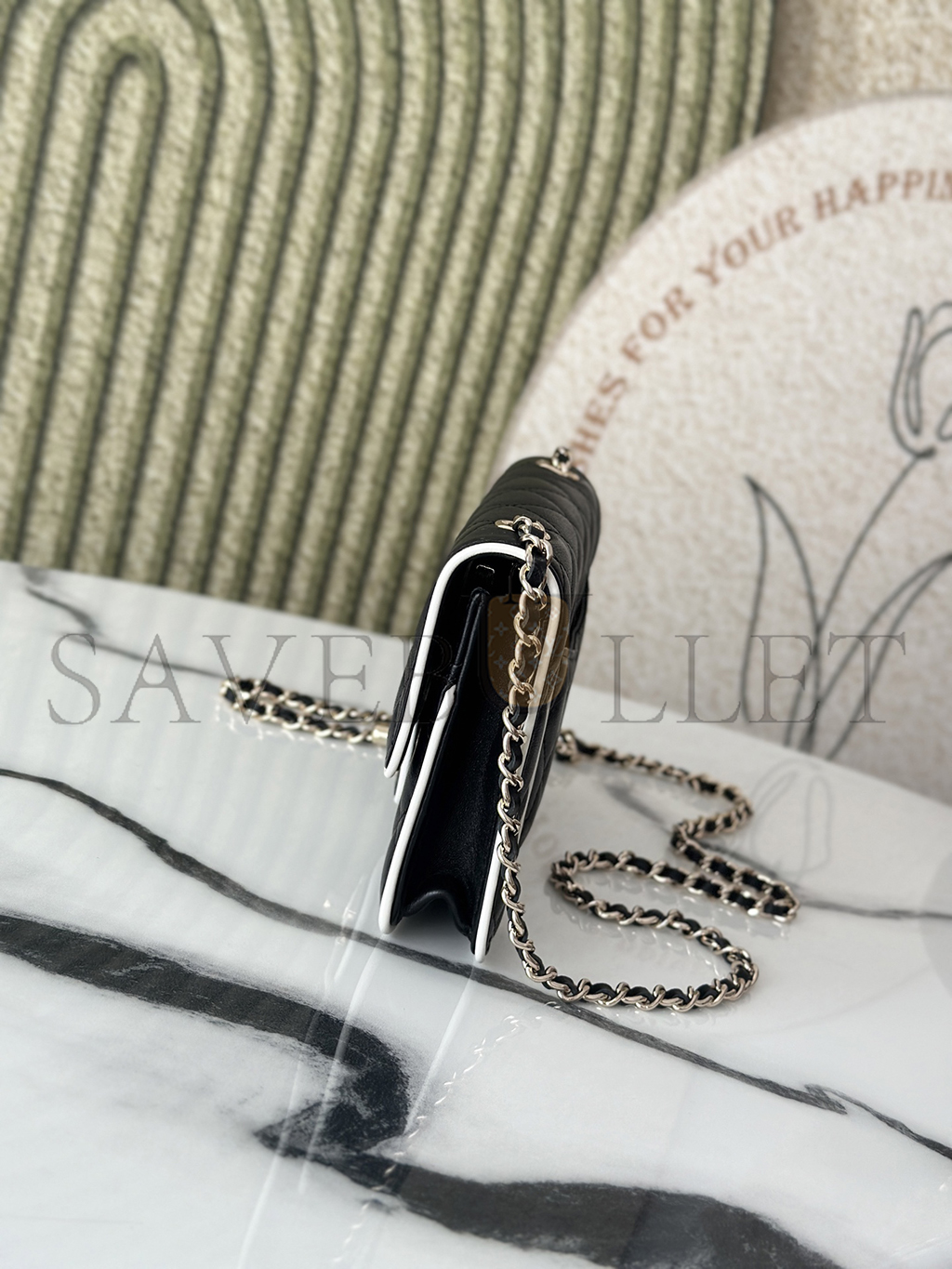CHANEL MASTER WOC BLACK AND WHITE CHAIN WALLET SHOULDER BAG AP4511 (19*12*3.5cm)