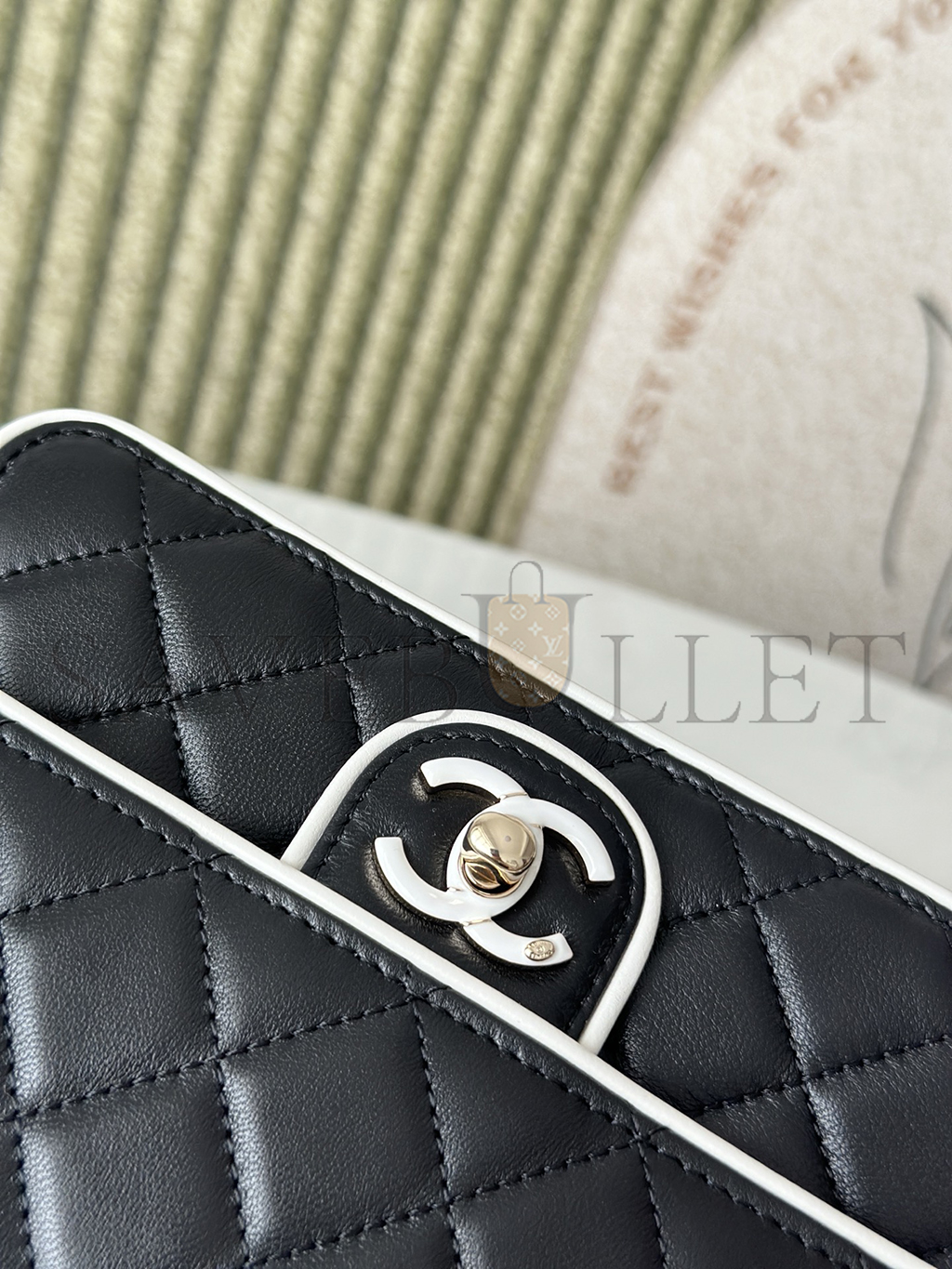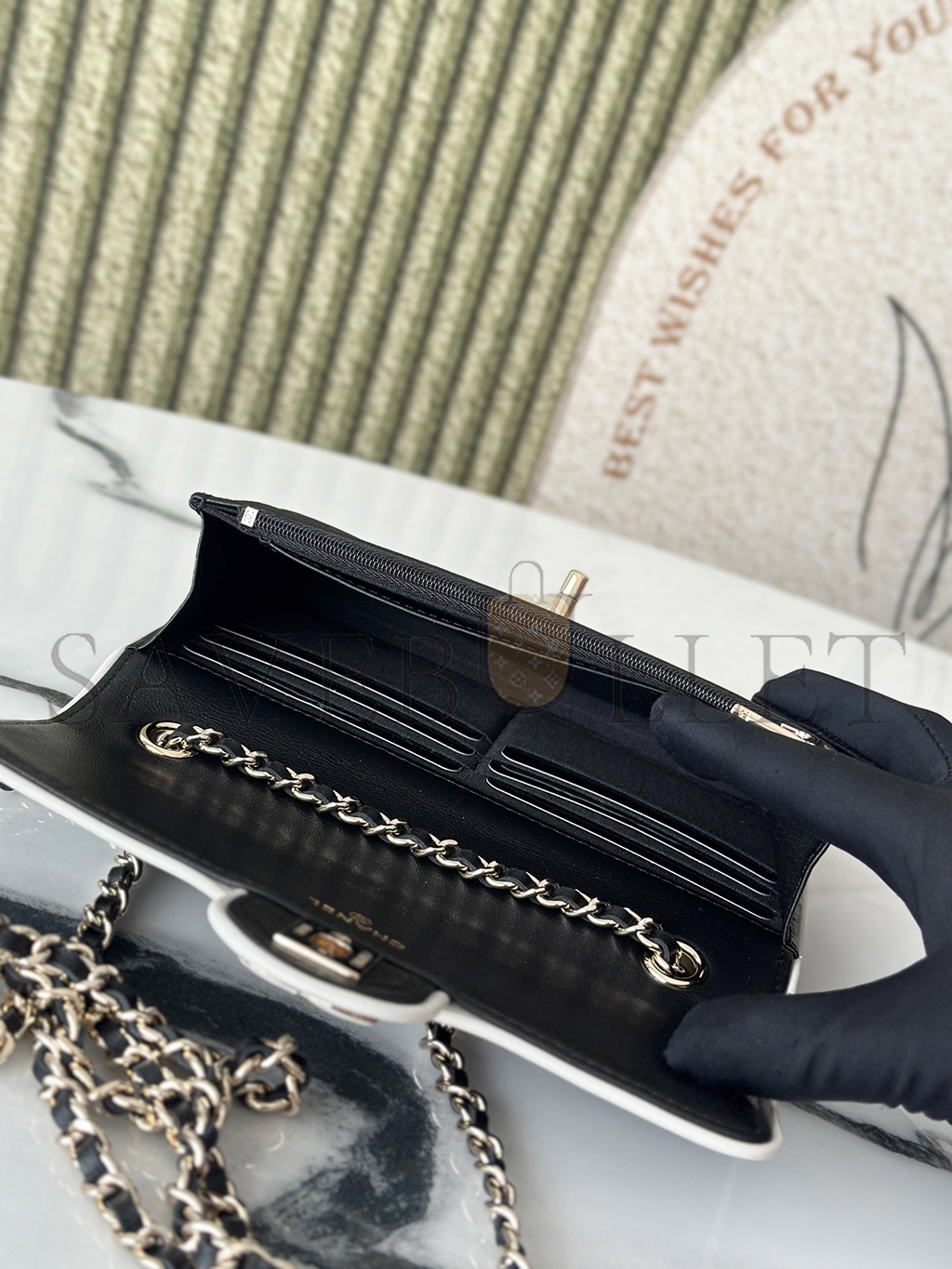 • CHANEL MASTER WOC BLACK AND WHITE CHAIN WALLET SHOULDER BAG AP4511 (19*12*3.5cm)