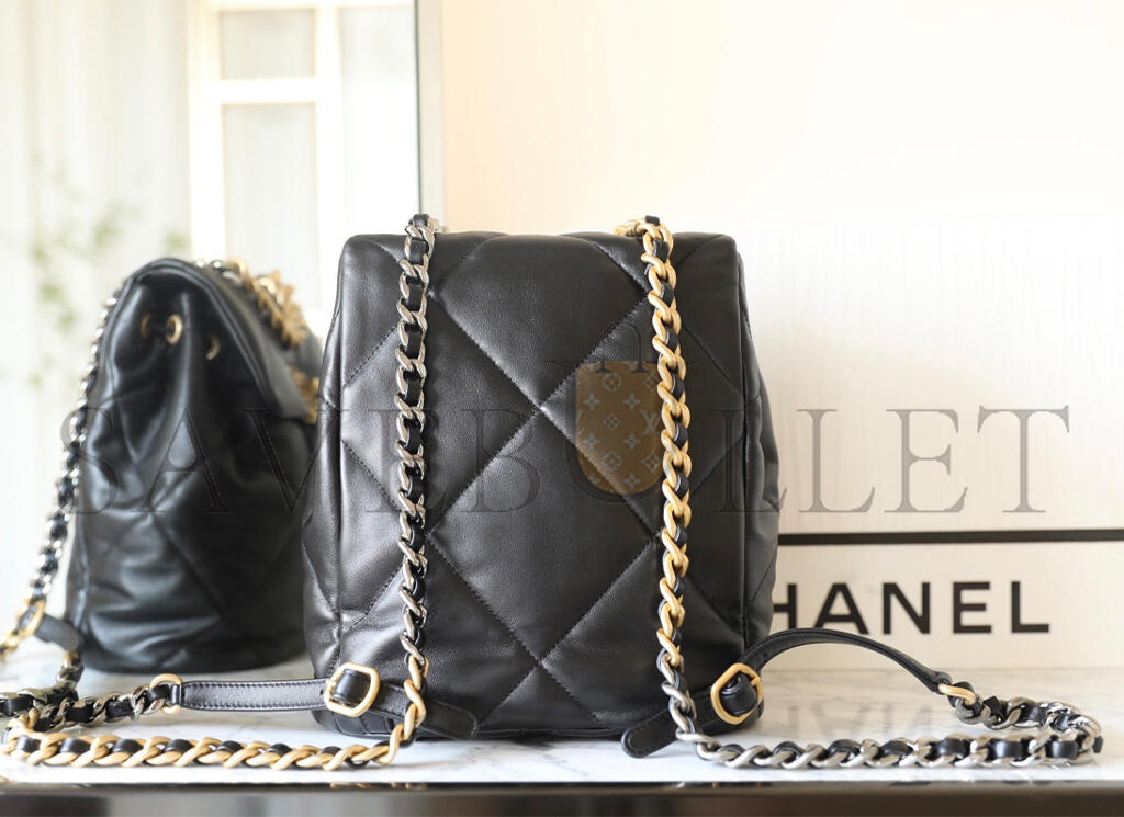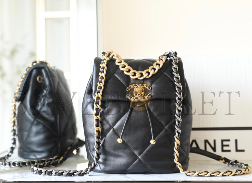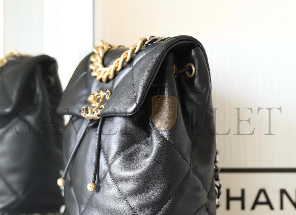 CHANEL MASTER 19 BACKPACK SHINY LAMBSKIN GOLD METALLIC BLACK (26*22*16cm)